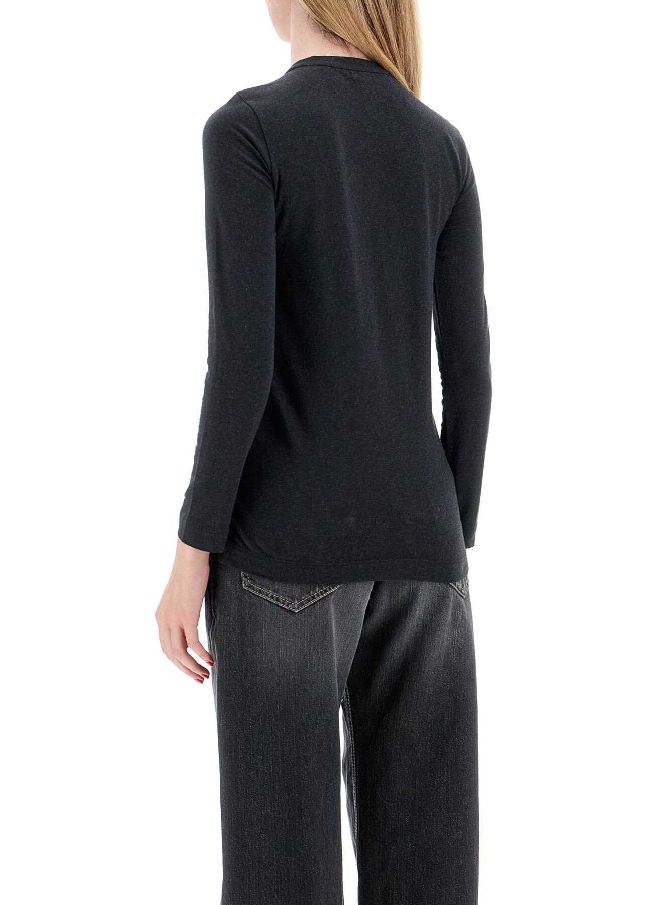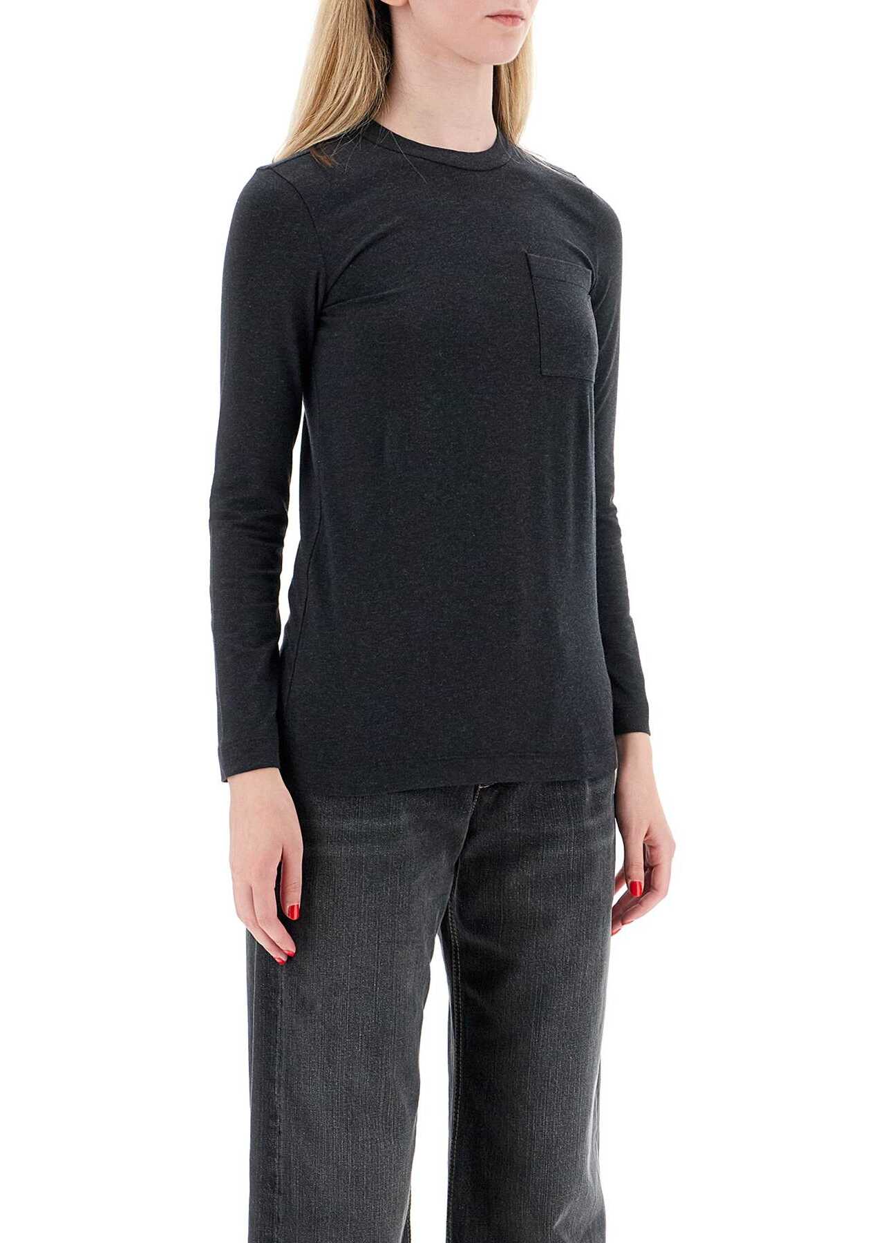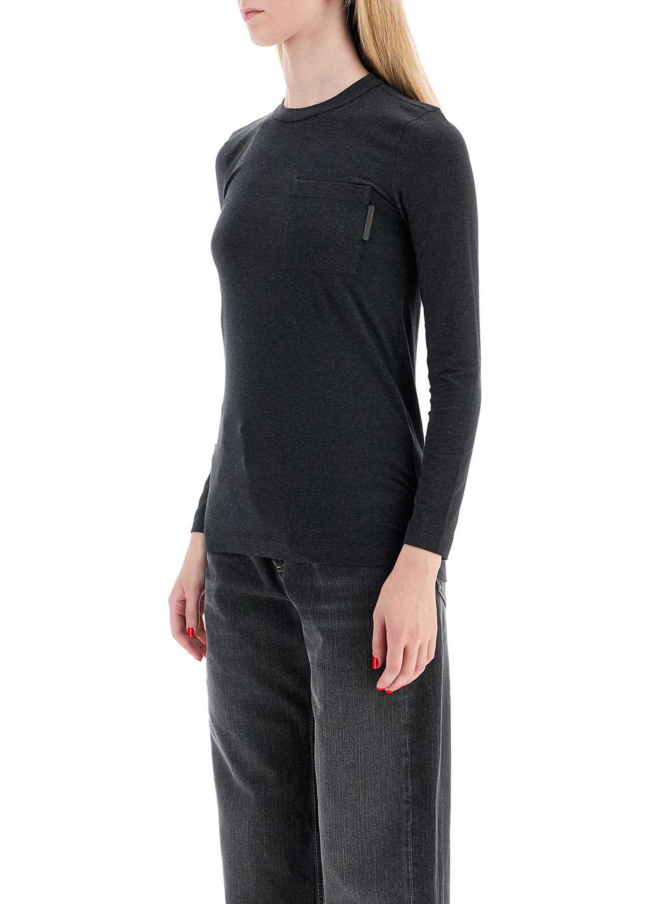 This long-sleeved T-shirt by Brunello Cucinelli is made of stretch cotton jersey and embellished with the iconic monile on the chest pocket. The fit is slim. The model is 177 cm tall and wears size XS.