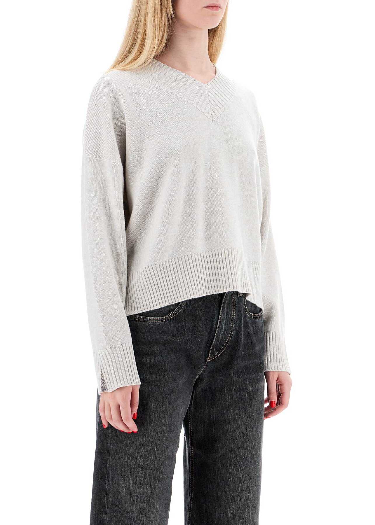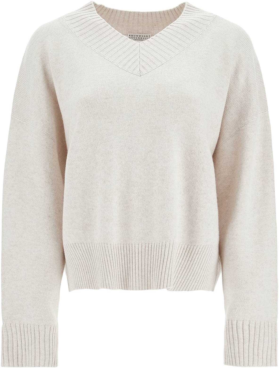 This Brunello Cucinelli pullover is made of pure cashmere ribbed knit and embellished with iconic monile embroidery that illuminates the cuff openings. It features a V-neck design, ribbed edges, and a relaxed fit. The model is 177 cm tall and wears size S.