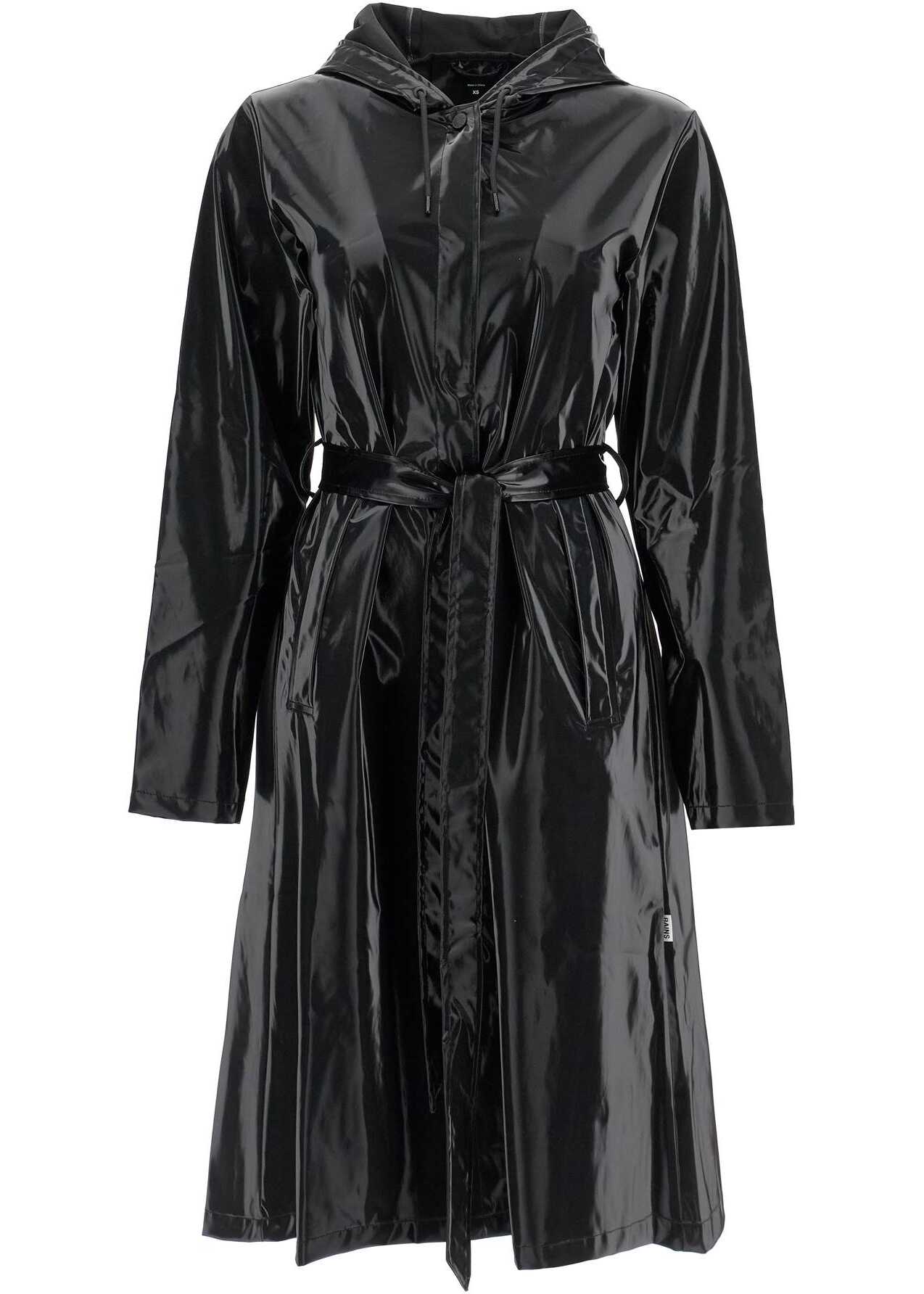 This long Rains raincoat is made of the iconic PU technical fabric. It features a drawstring hood and a flared silhouette that can be cinched at the waist with the included belt. The coat has a hidden snap button fastening, adjustable cuffs, flap pockets and an inverted pleat on the back. The female model is 177 cm tall and wears size XS.
