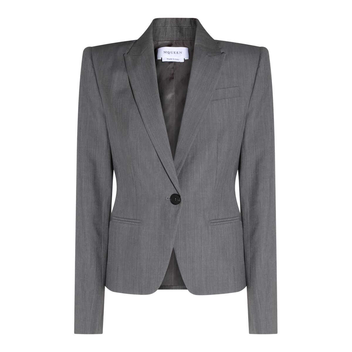 Grey wool blazer from Alexander McQueen featuring long sleeves , button fastening, round hem and regular vestibility.