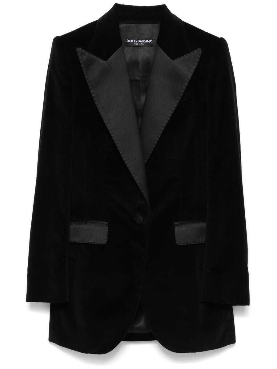Dolce & Gabbana's Turlington blazer in black, made from a blend of cotton, silk and velvet, is a high-class piece. Satin inserts and wide peak lapels add a distinctive touch. With a front closure, shoulder pads, long sleeves with buttoned cuffs and front flap pockets, it is completed with a center back slit and silk lining for exclusive comfort.