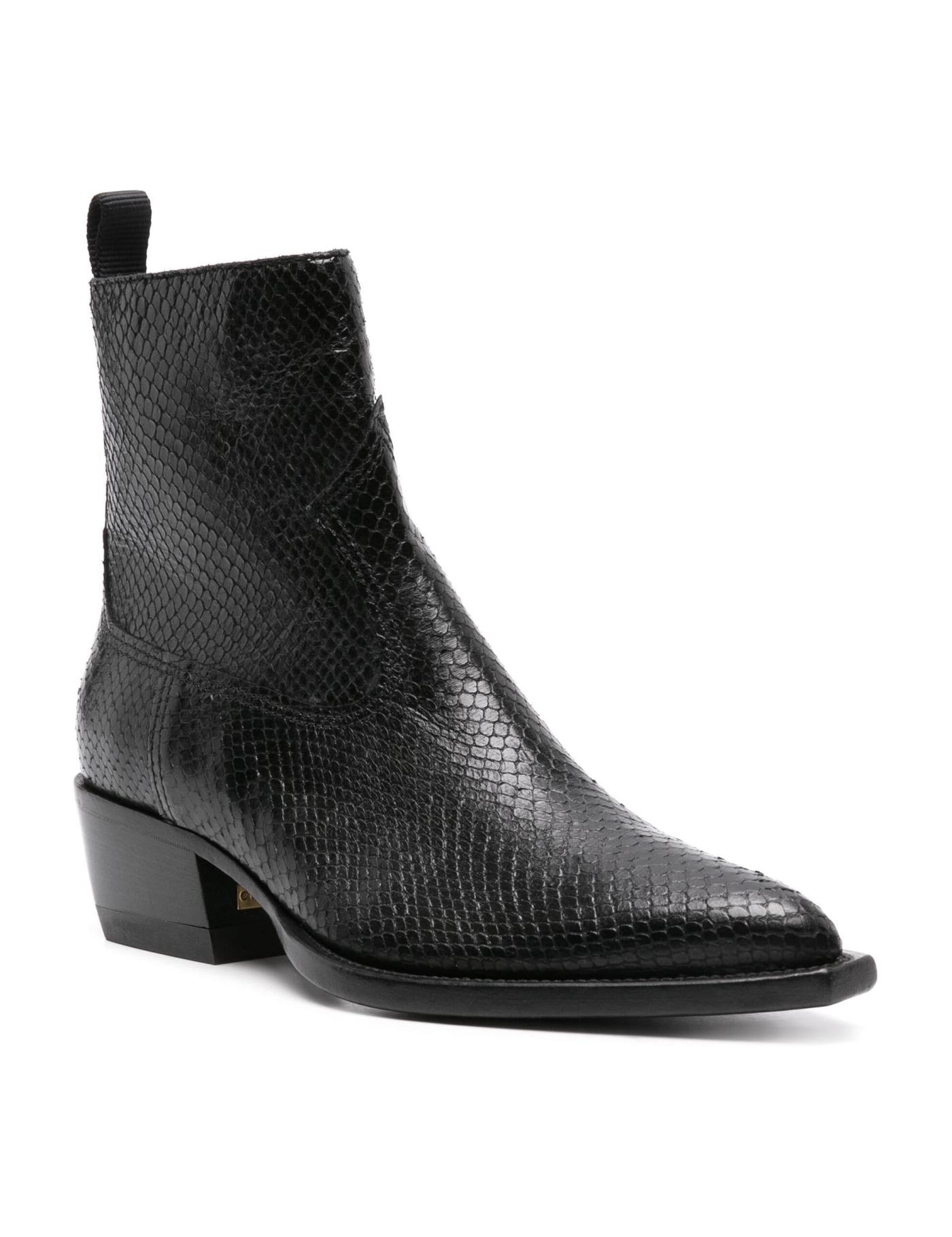 snakeskin-effect leather ankle boots