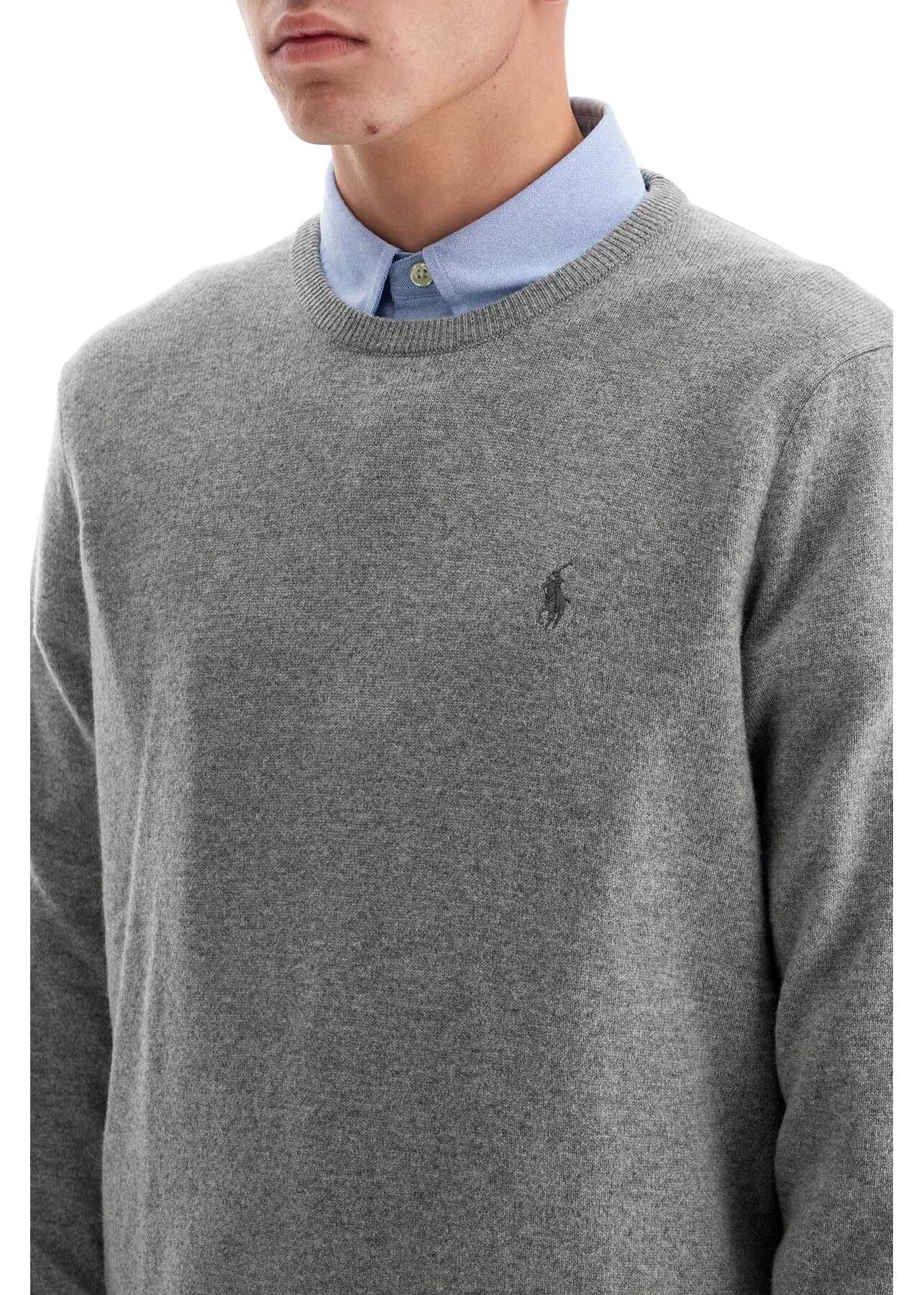 Polo Ralph Lauren crew-neck sweater in pure wool knit, featuring the signature pony embroidery at chest, finished with ribbed edges. Relaxed fit. The model is 182 cm tall and wears a size L.