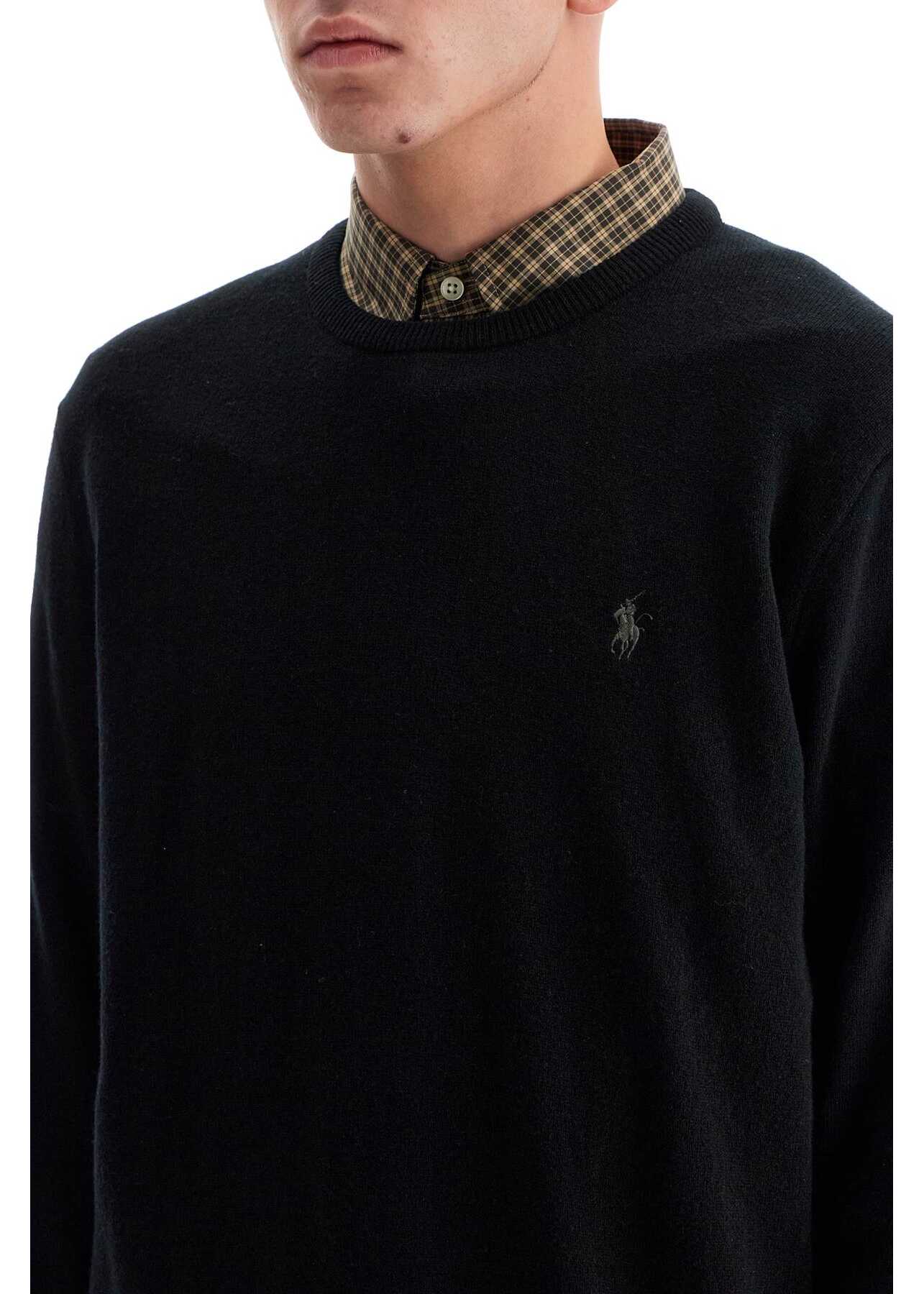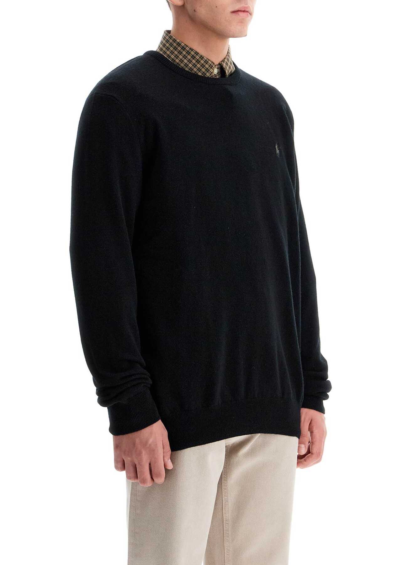 Polo Ralph Lauren crew-neck sweater in pure wool knit, featuring the signature pony embroidery at chest, finished with ribbed edges. Relaxed fit. The model is 182 cm tall and wears a size L.