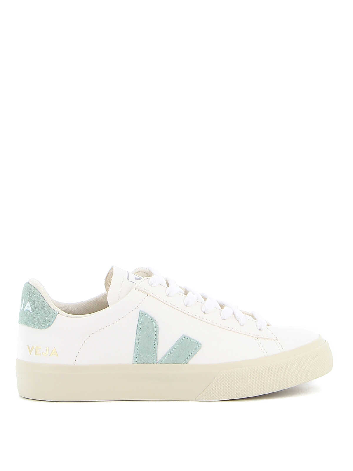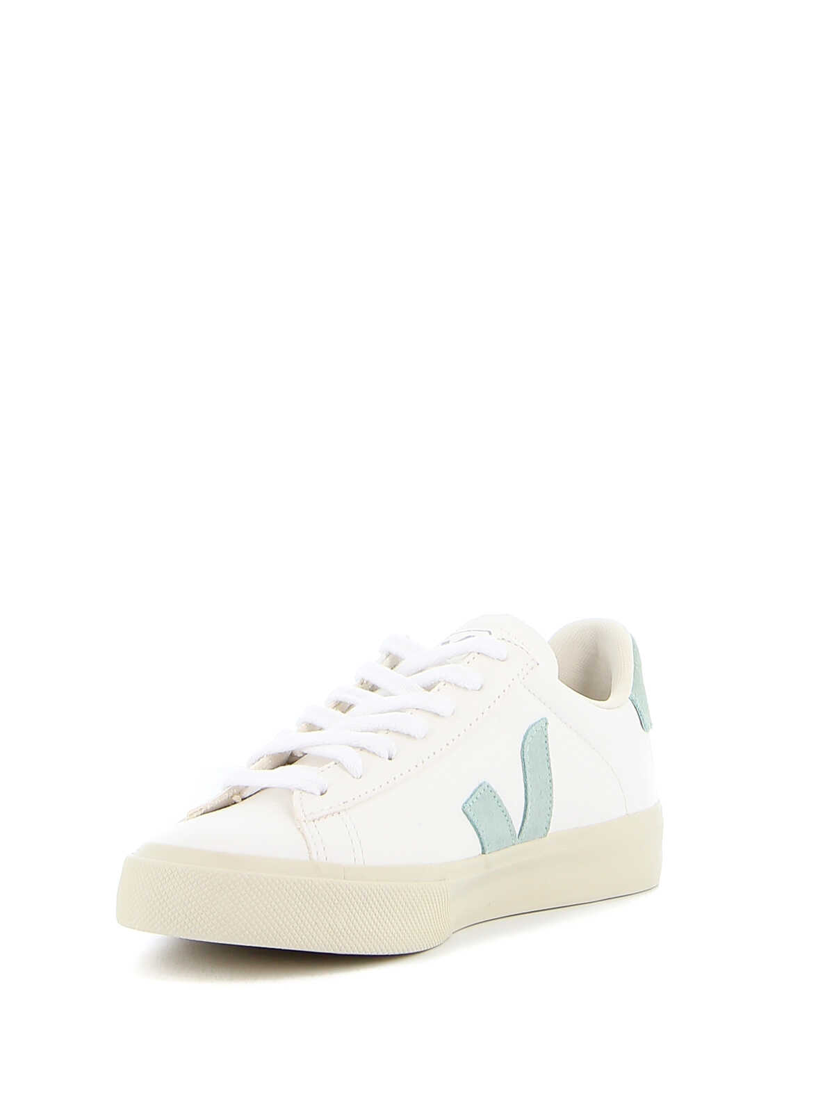 Veja White leather sneaker, water green suede side and back logo detail, rubber sole, round toe.