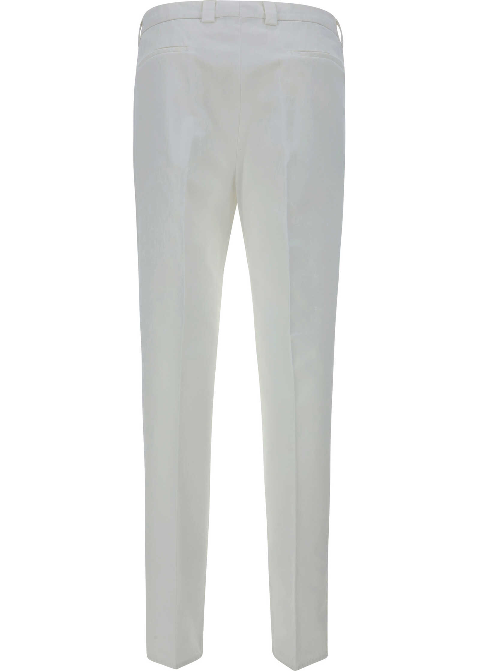 Cotton Pants by Brunello Cucinelli, front button and zip fastening, two side slash pockets, two welt pockets on back, belt loops on waistband, monochrome pattern.
