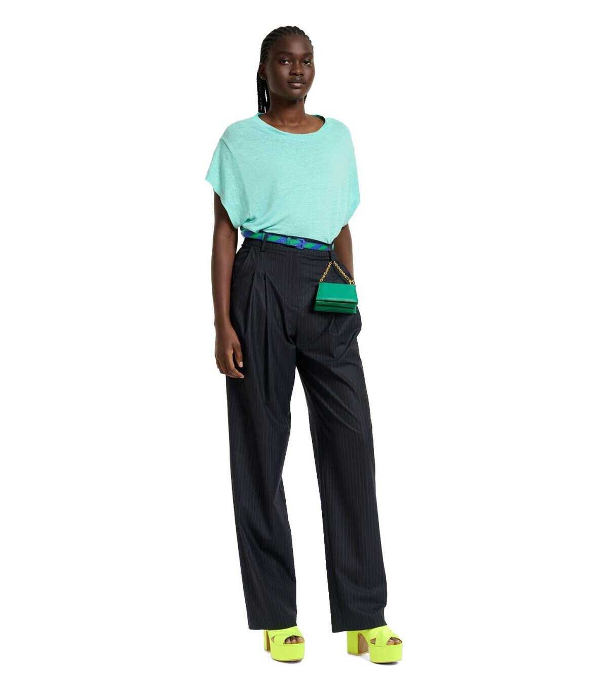 Duchamp trousers by Essentiel Antwerp made of blue viscose blend with pinstripe pattern. Slanted pockets on the sides, welt pockets on the back, zip and button fastening. Straight leg.