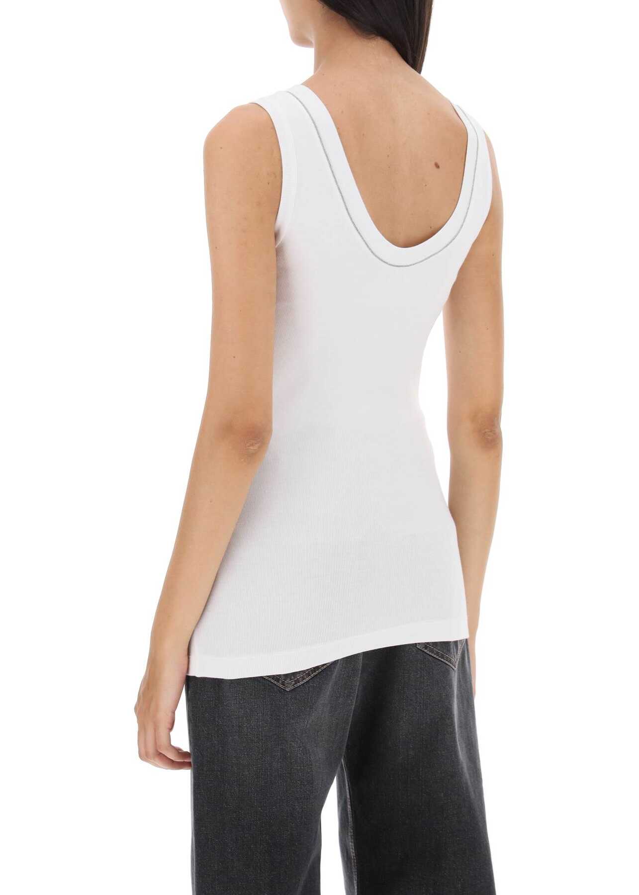 Brunello Cucinelli tank top crafted in ribbed cotton jersey. Design characterized by V-neck embellished with Shiny Collar, it features a waisted fit. The model is 177 cm tall and wears size XS.