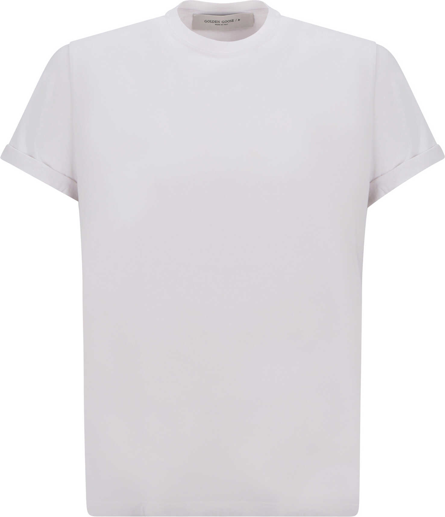 Cotton T-Shirt by Golden Goose, ribbed crew neck worn effect, embroidered patch on front, monochrome design, regular fit.