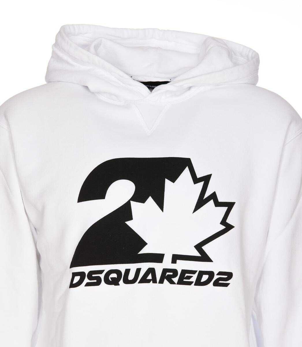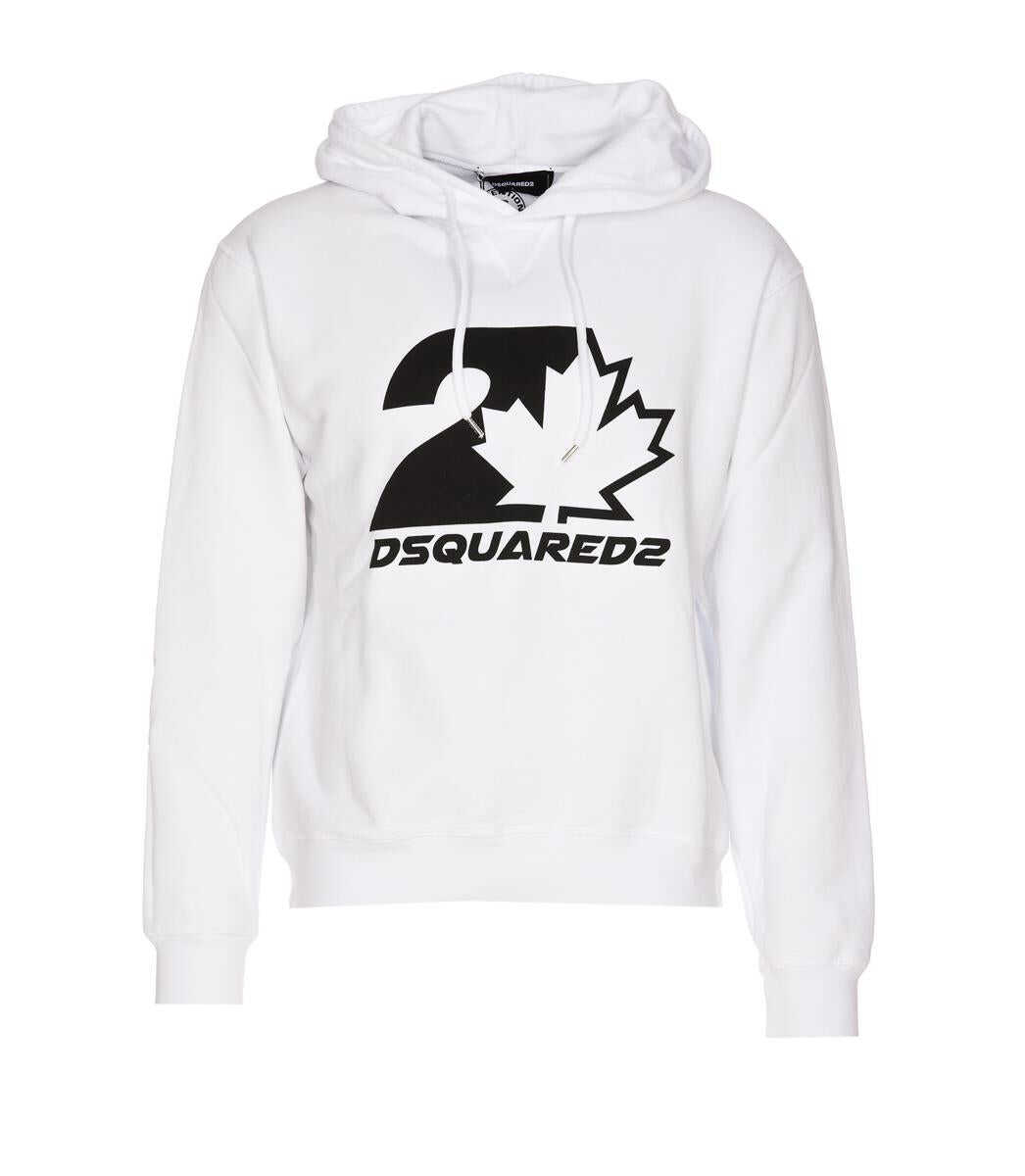 Dsquared2's hoodie crafted in white cotton fleece with Leaf logo print at chest. Featuring long sleeves and ribbed edges.