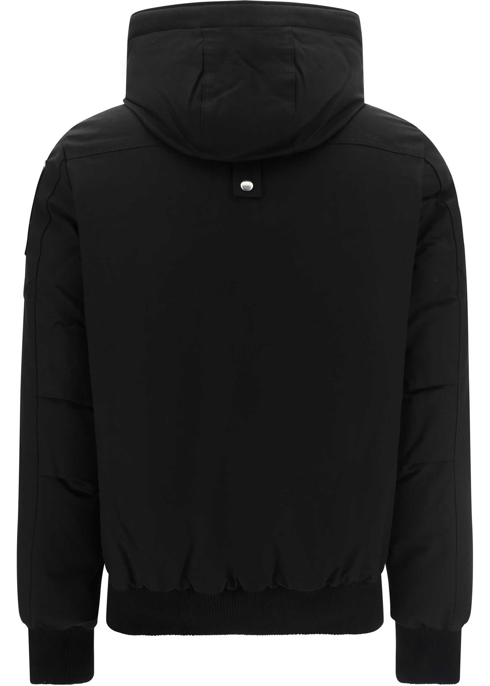 Biencourt Bomber Jacket by Moose Knuckles, padded and quilted design, high crew neck with removable snap button hood, front zipper closure, two side welt pockets, elastic ribbed cuffs, iconic brand logo plaque applied on left arm, regular fit.