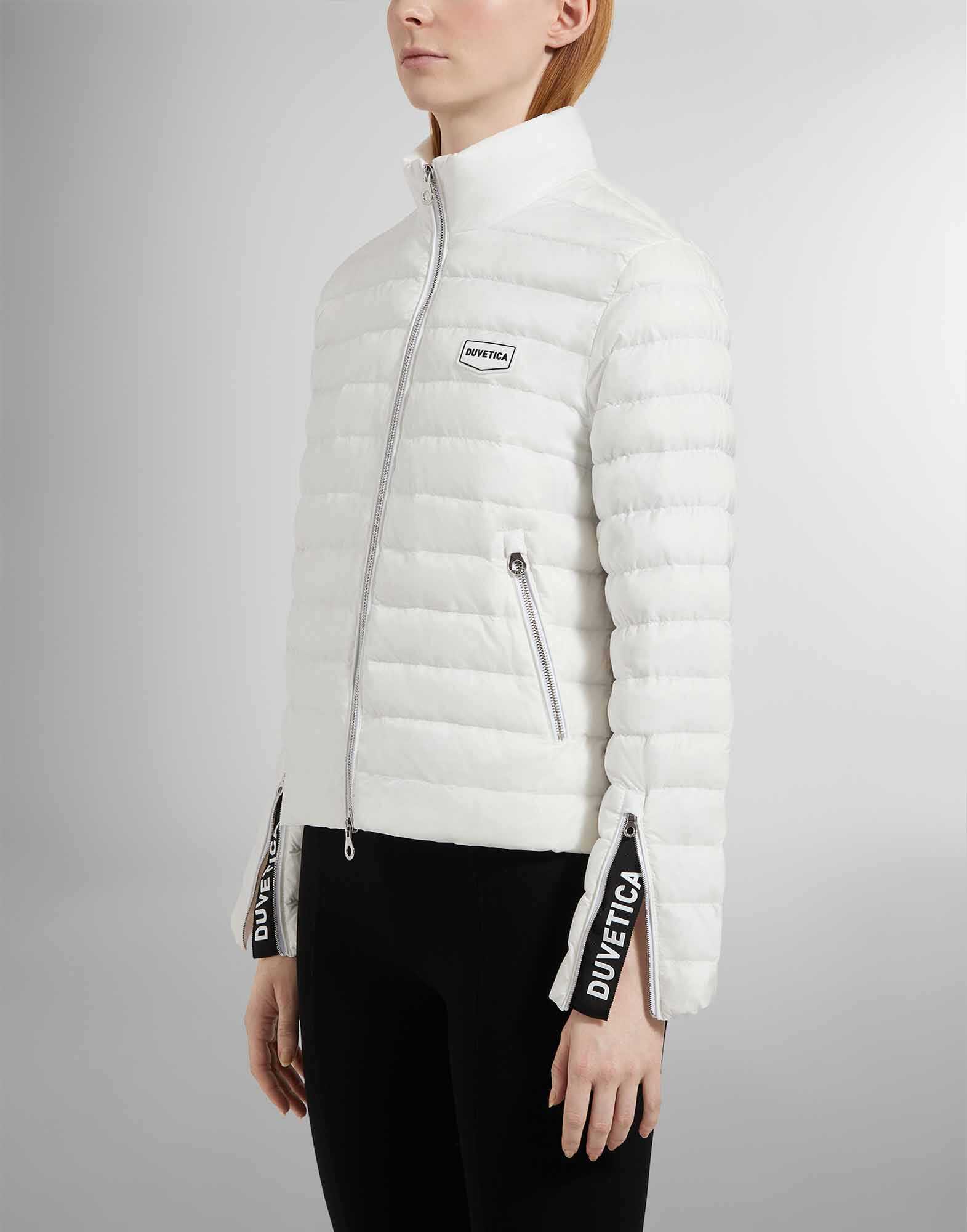 Stay warm and stylish with the BEDONIA puffer jacket from DUVETICA. Made of water-repellent nylon with 90% down / 10% feather padding and a fill power of 800, it offers maximum warmth and lightness. Featuring horizontal quilting, convenient zip pockets at the sides and slits at the cuffs trimmed by logo tape, it can be worn on its own or as an underlayer to make capes and overcoats even warmer. Get yours now!