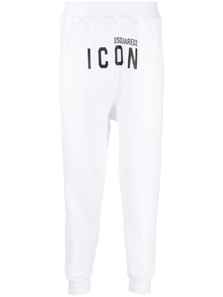 logo-print detail track pants from DSQUARED2 featuring signature Icon motif, logo print to the front, elasticated ankles, elasticated waistband, two side inset pockets, white and cotton.