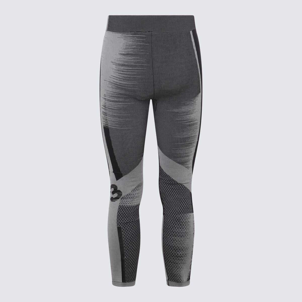 Black-grey skinny trousers from Y-3 featuring stretch-design, stripe print, logo print at the leg, high-waisted, elasticated waistband and skinny cut.