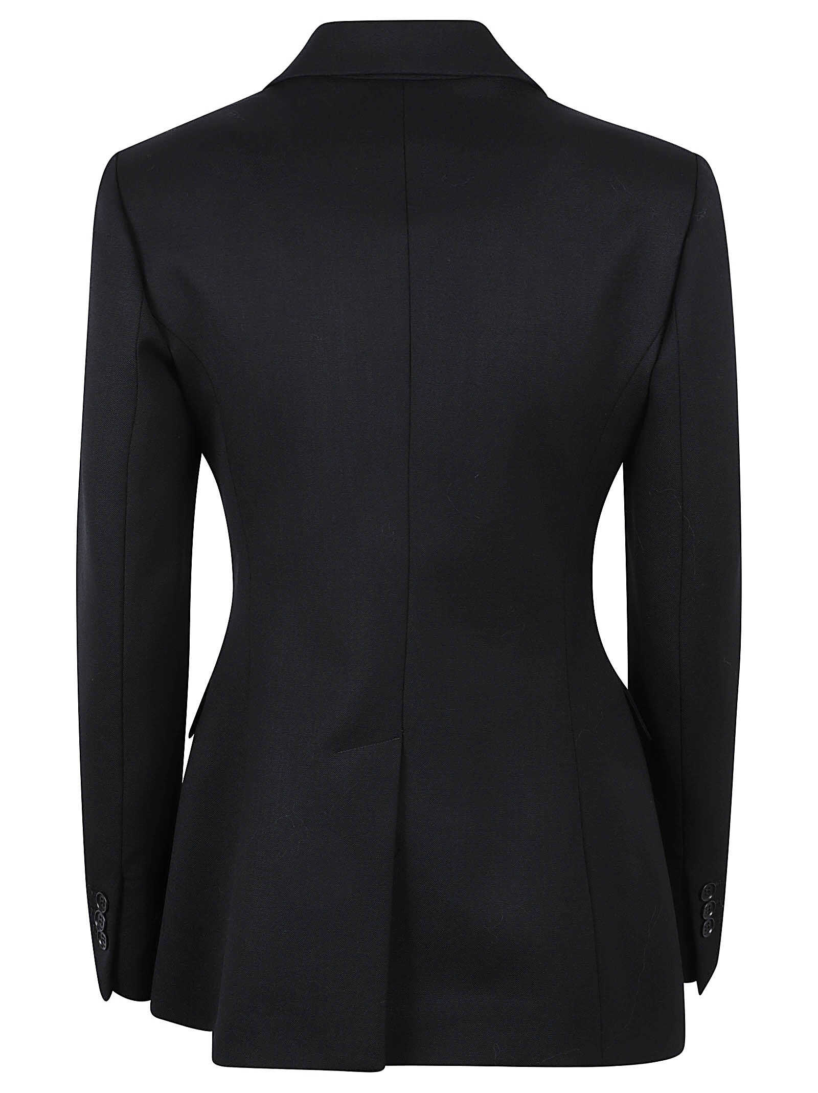 Elevate your style with this elegant black double-breasted wool-blend blazer from P.A.R.O.S.H. Made from a high-quality wool blend, it features notched lapels, long sleeves with buttoned-cuff sleeves, and multiple pockets. The American rear vent and straight hem add a sophisticated touch. Perfect for any occasion, this jacket is a must-have for your wardrobe. Shop now!