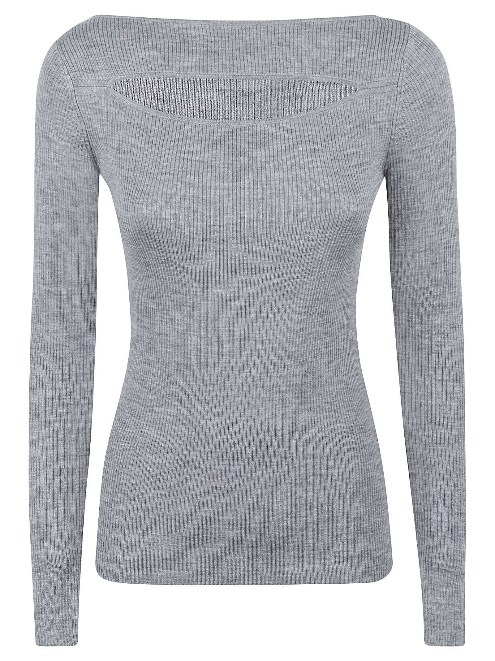 Introducing the Parosh Sweaters in Grey. This stylish jumper is made from 100% wool and features a ribbed knit construction with cut-out detailing. The round neck and long sleeves add a touch of elegance, making it perfect for any occasion. Complete your wardrobe with this must-have piece from the renowned brand P.A.R.O.S.H.