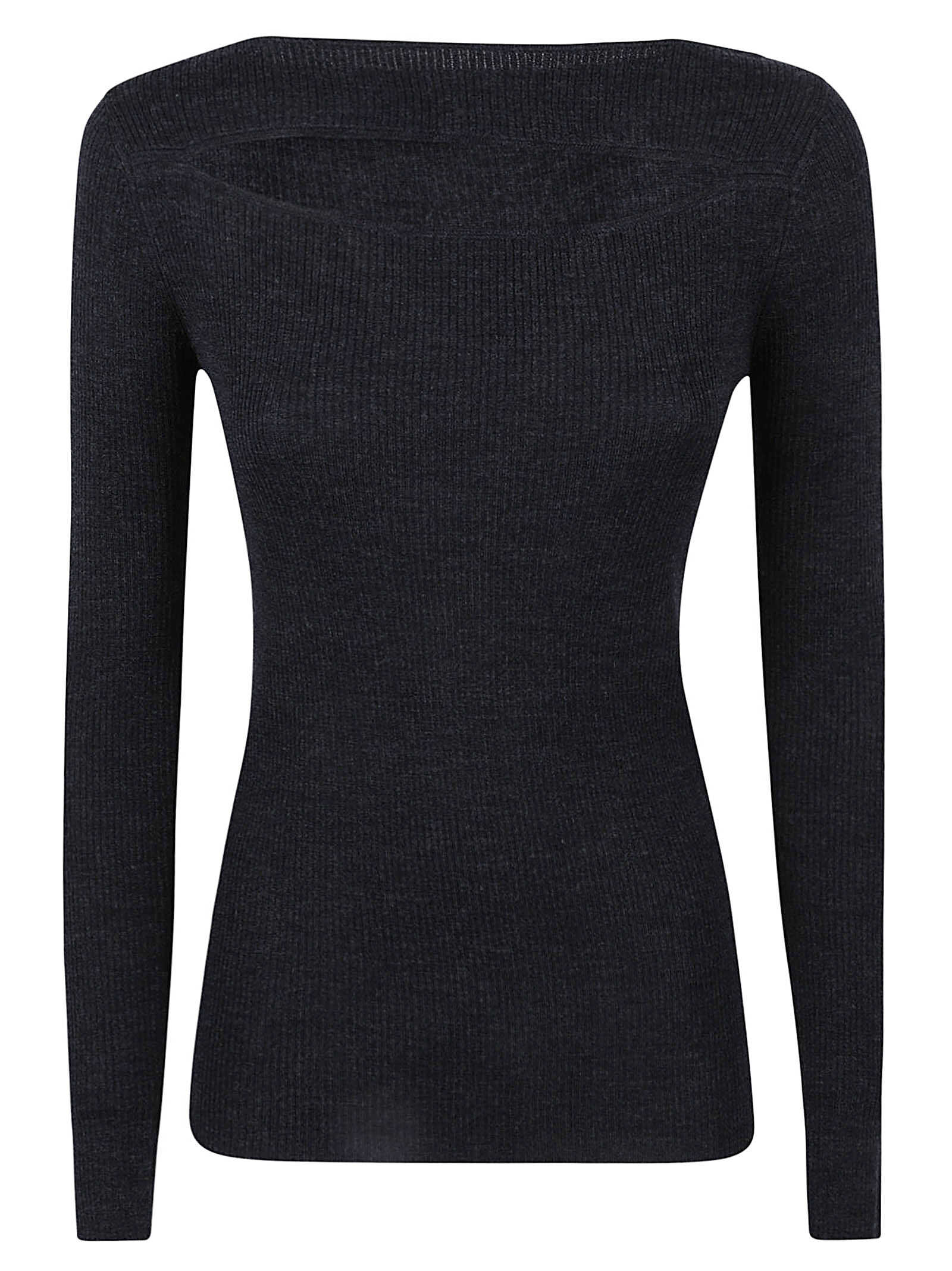Stay stylish and cozy in this grey wool sweatshirt from P.A.R.O.S.H. The cut-out detailing, boat neck, and long sleeves add a trendy touch to this classic piece. Made with 100%WO material, it guarantees comfort and warmth. Perfect for women who want to stay fashionable during colder days. Get yours now!