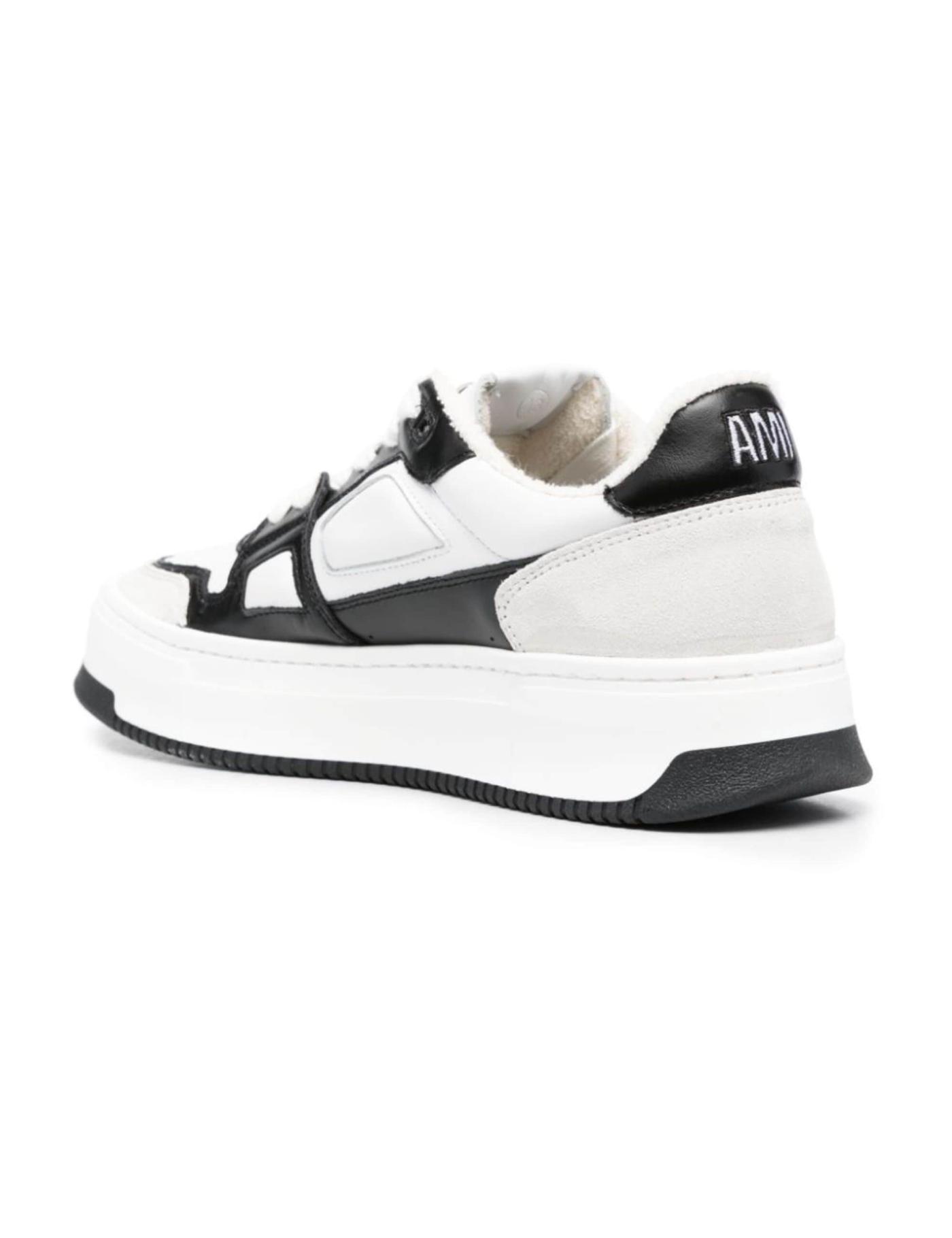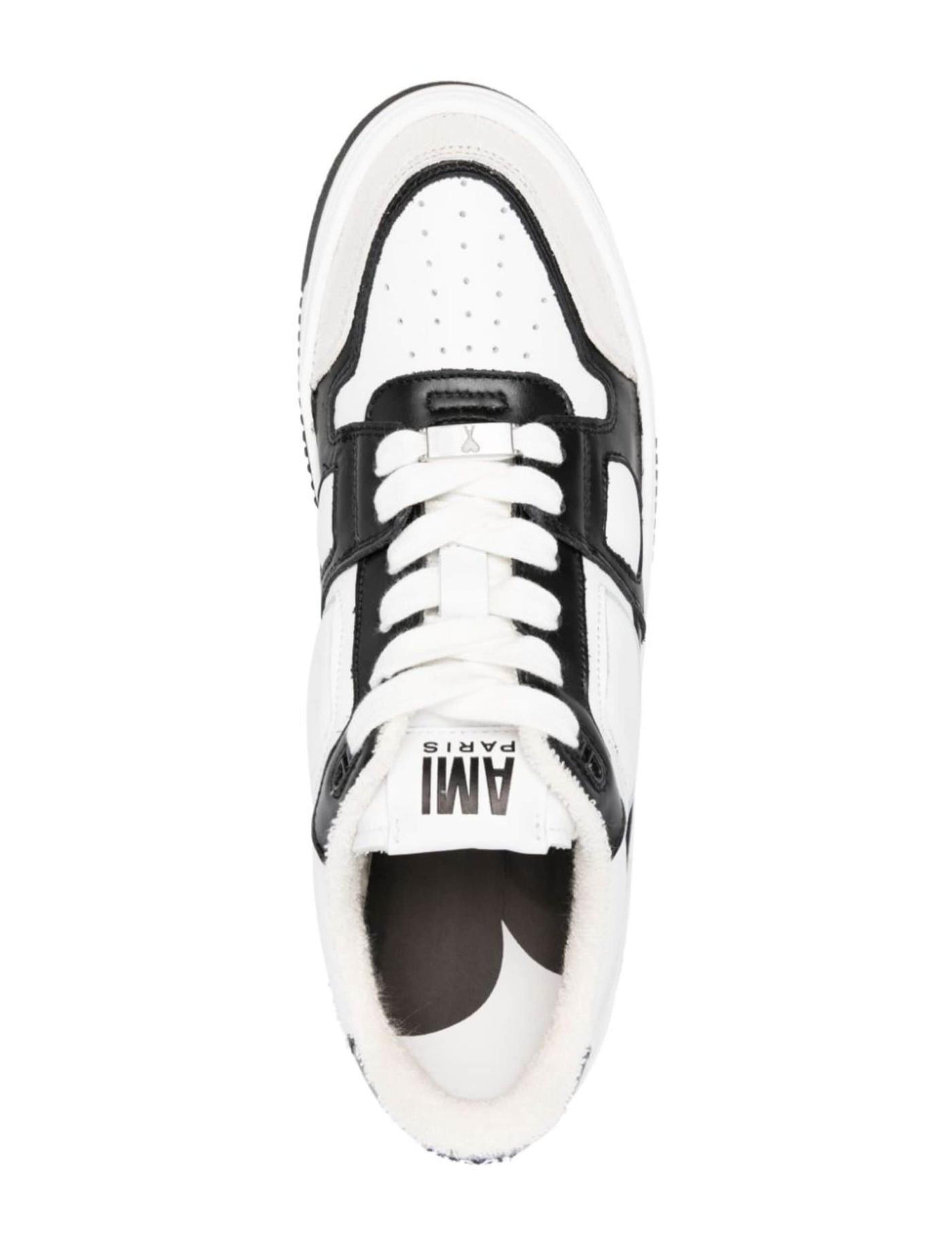 Founded in Paris, AMI Paris takes its key inspiration from the French capital. Offering a pared-back aesthetic are these calf leather sneakers, which have a low-top silhouette and panelled construction in black and white colours.