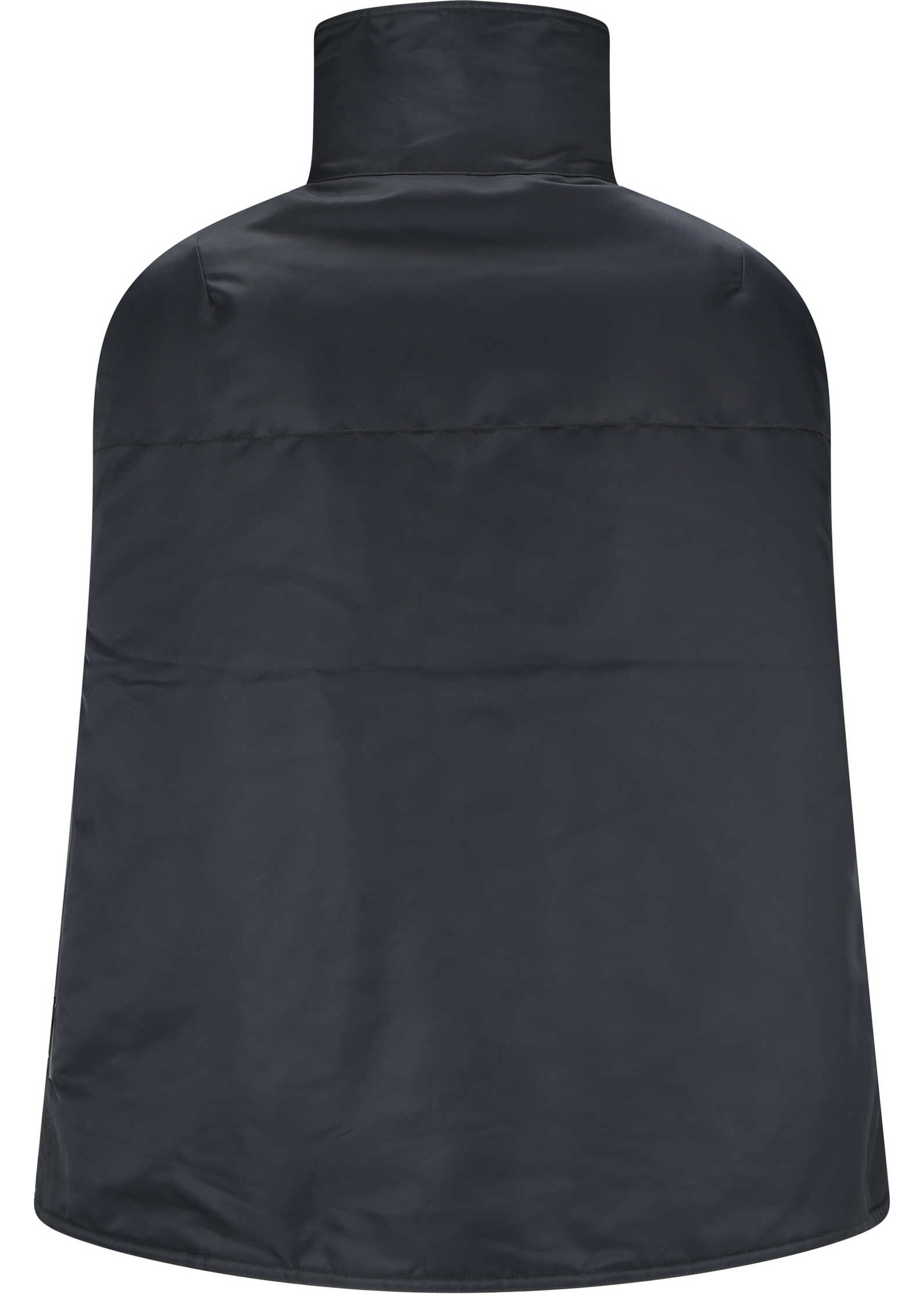 Bomber Cape Jacket by Coperni, high neckline, front zipper closure, two cut-out details on adjustable side panels with zipper, contrasting brand iconic signature patch applied on front, all-over padded design.