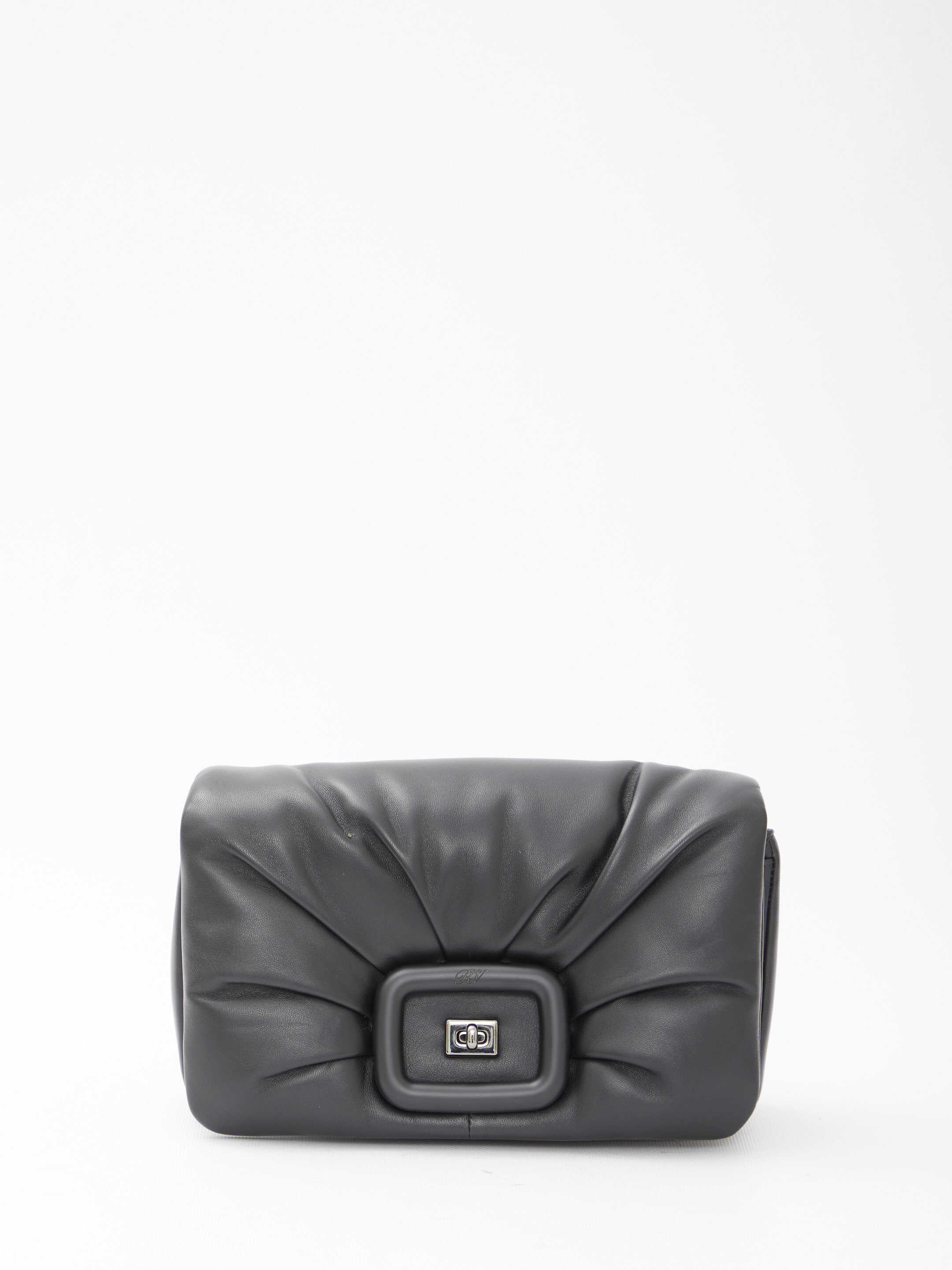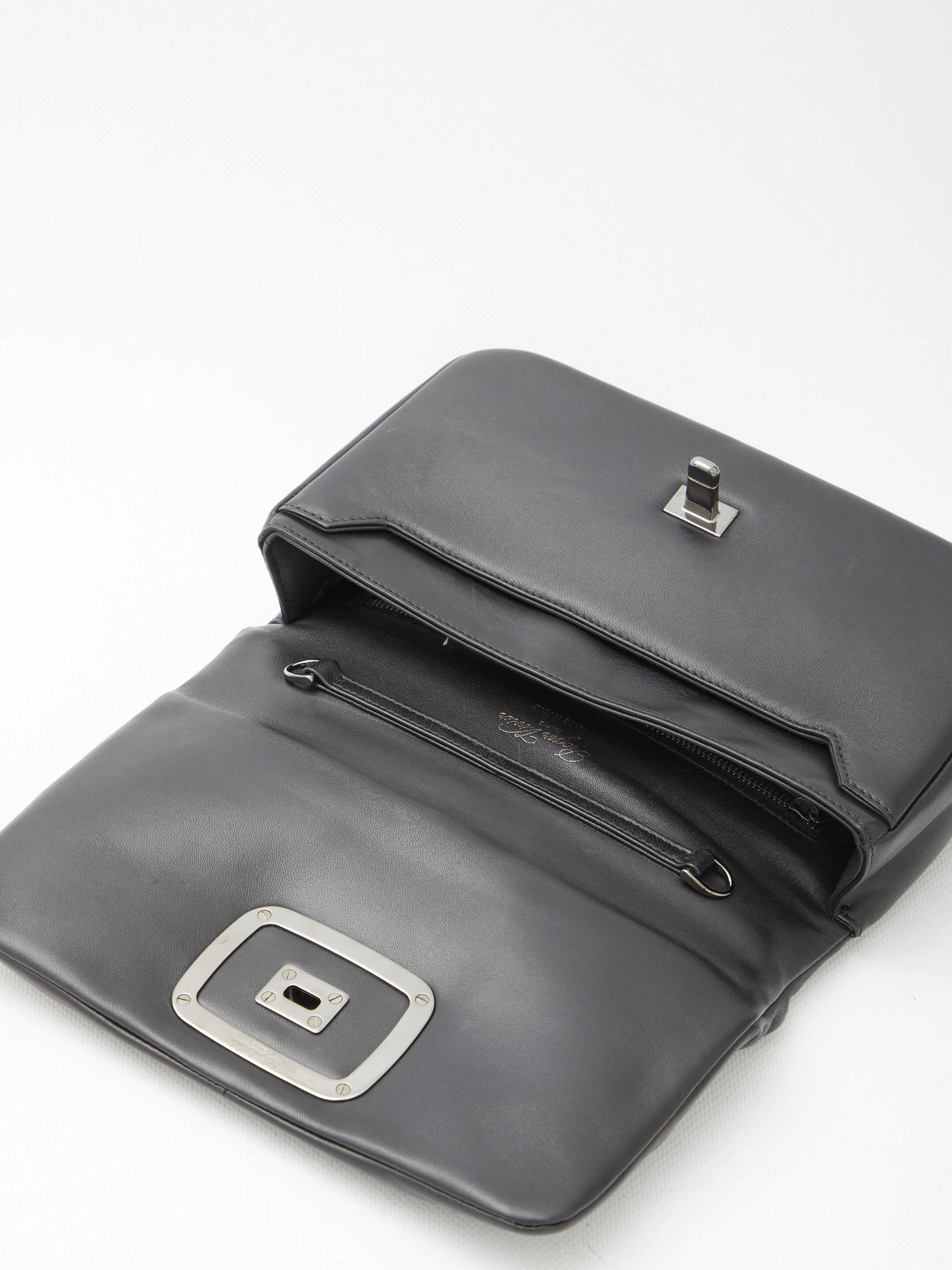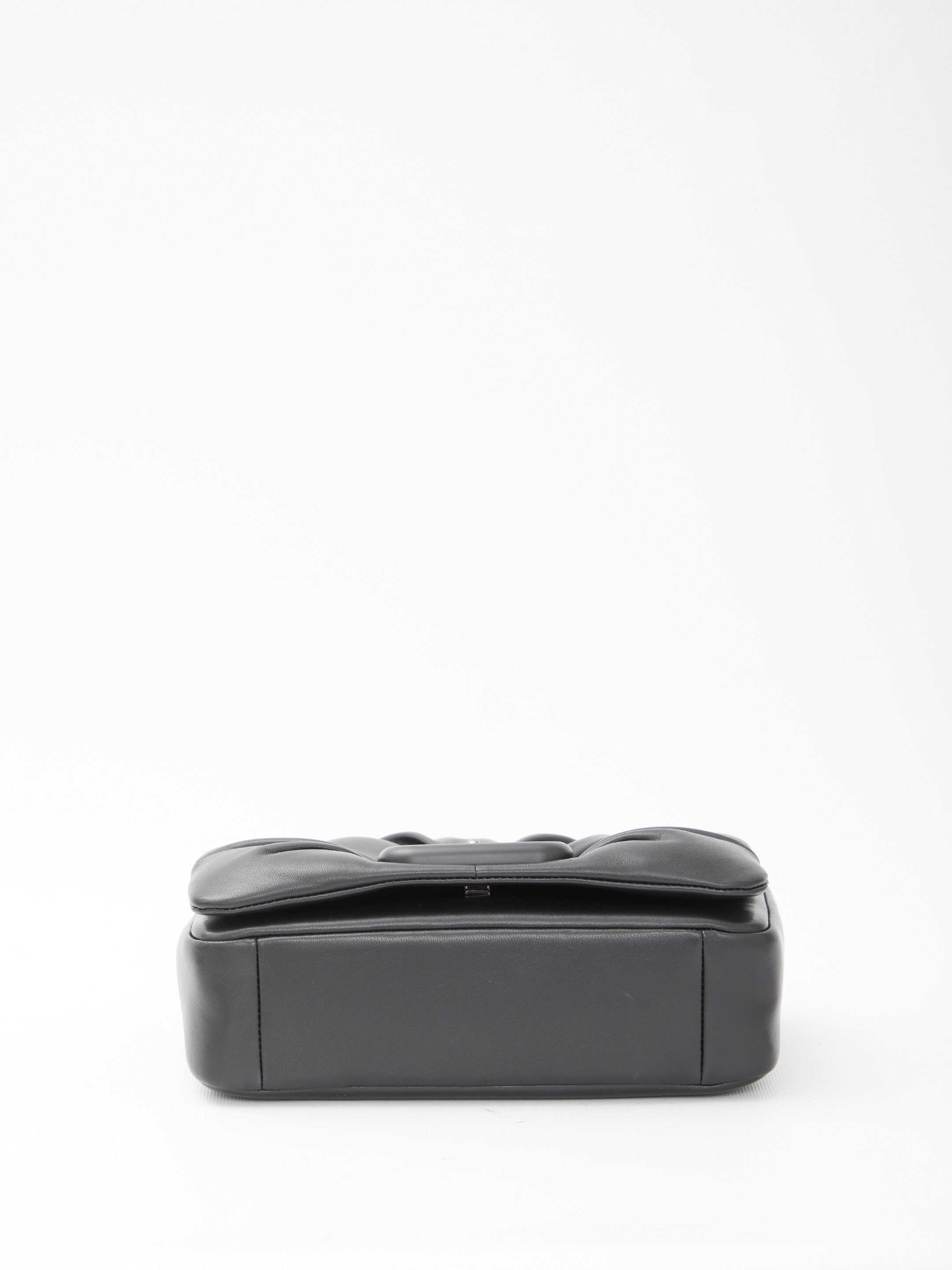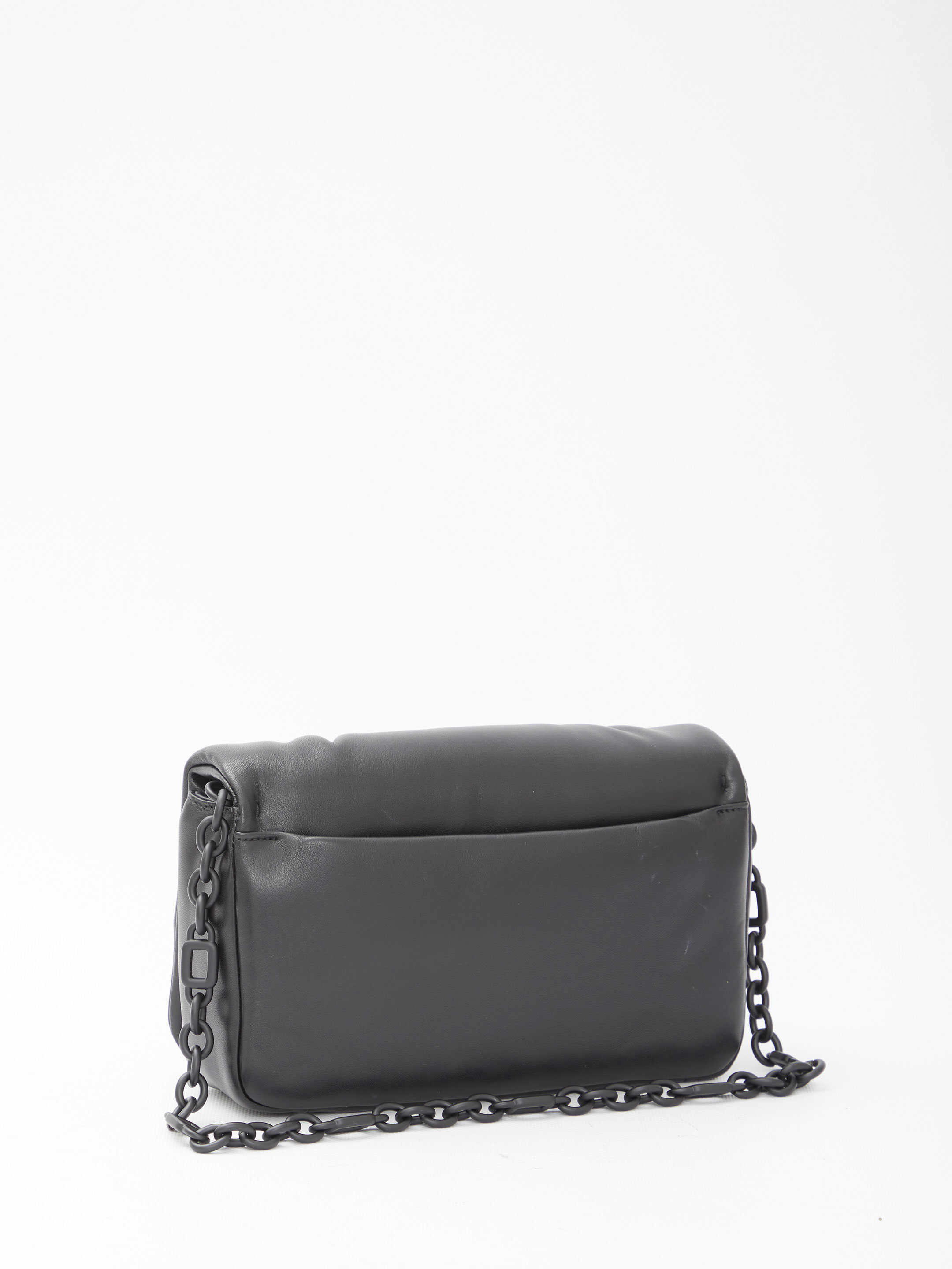 Viv' Choc bag in soft black nappa with tonal square buckle. It features detachable chain shoulder strap, turn-lock closure, one main interior compartment, one interior zip pocket, one interior card slot and one interior flat pocket. One additional flat pocket at the back. Any leather imperfections are not to be considered manufacturing defects, but a peculiarity of the material.