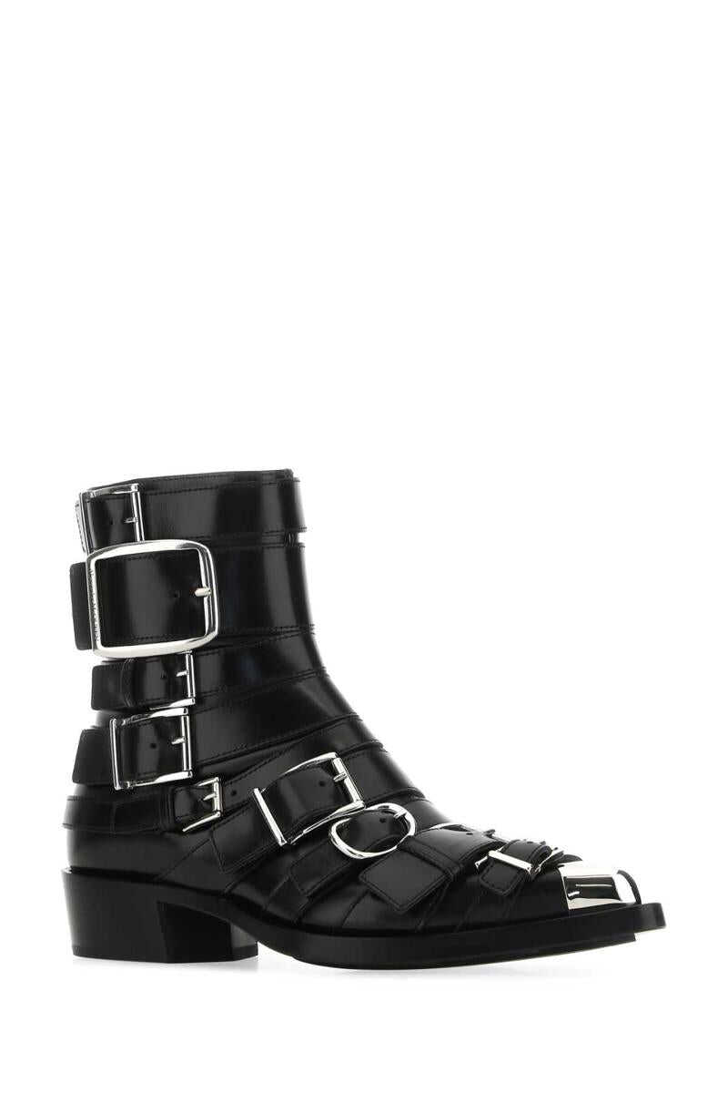 Black leather Punk ankle boots