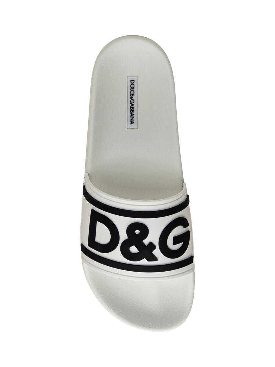 White rubber slipper. Molded rubber upper. Extra light rubber sole with logoed label. Logo embossed on mask and sides.