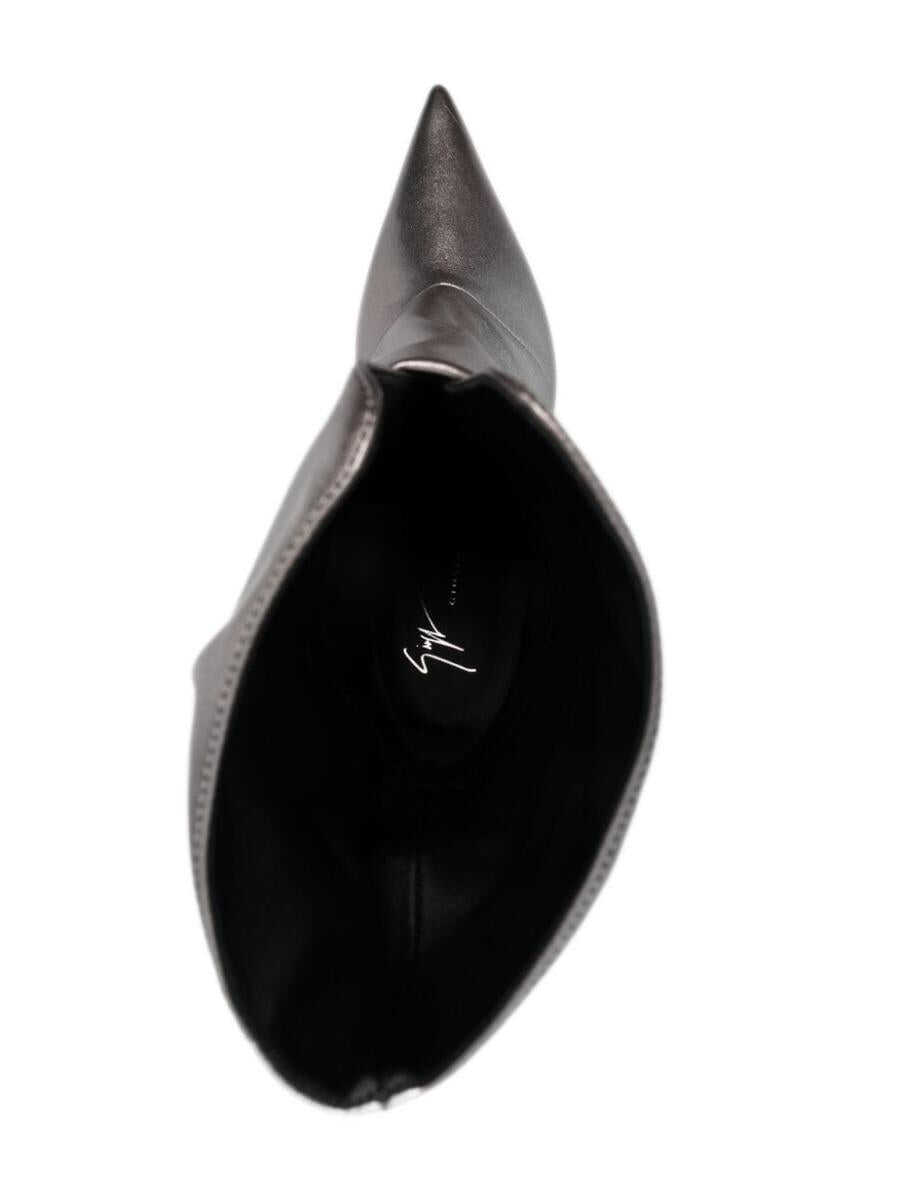 Yunah 80mm metallic-finish boots from Giuseppe Zanotti featuring silver-tone, calf leather, metallic finish, pointed toe, slip-on style, branded insole, high stiletto heel and leather sole.