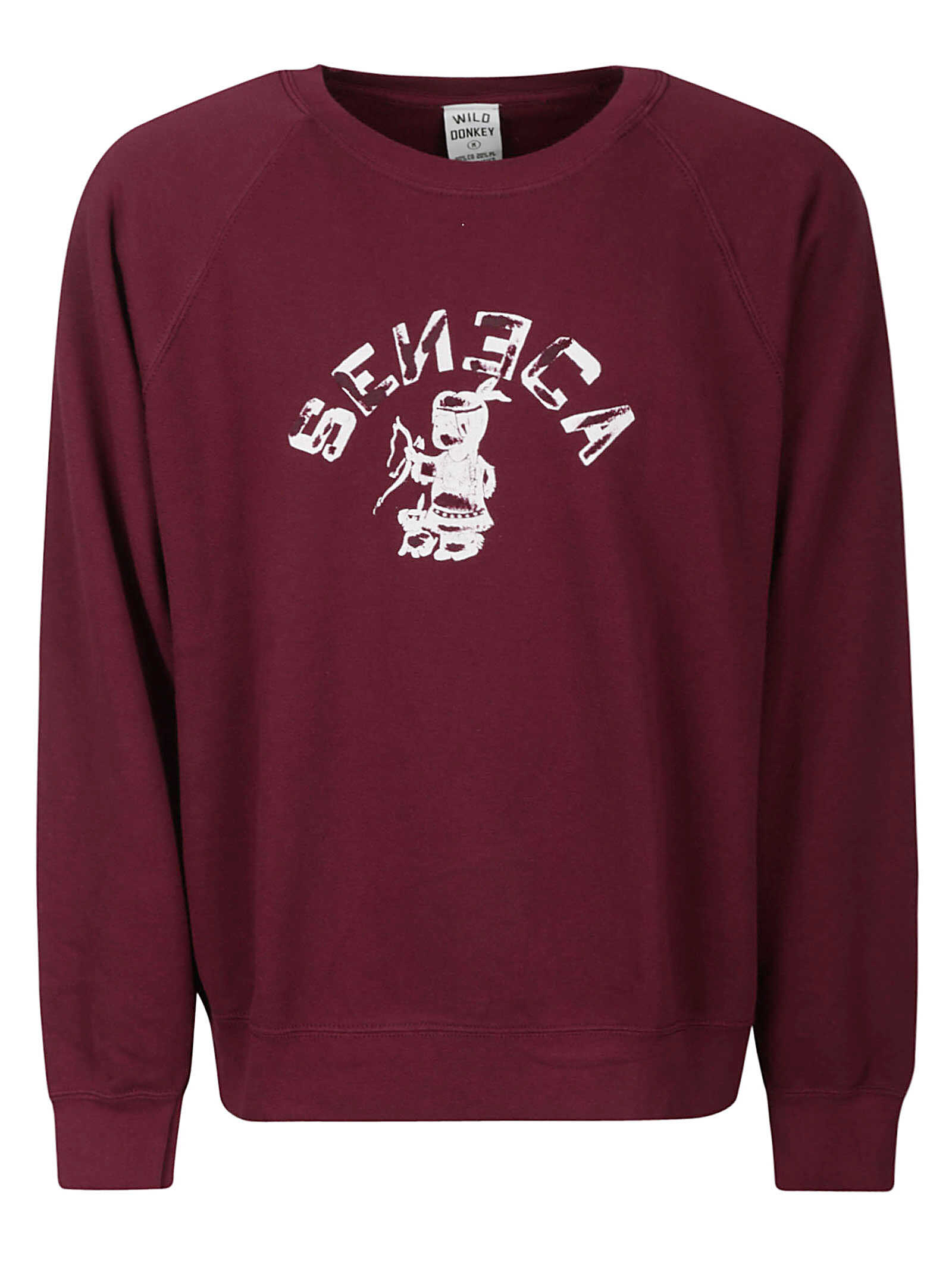 Wild Donkey Burgundy cotton sweatshirt, white front print, ribbed edges.