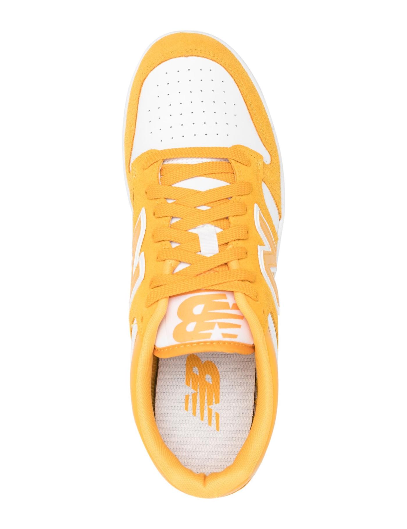 Inspired by the original BB680 – the clean lines of the 480 are elevated with contrasting yellow suede overlays. Several branded motifs and a perforated toebox adorn its panelled design.