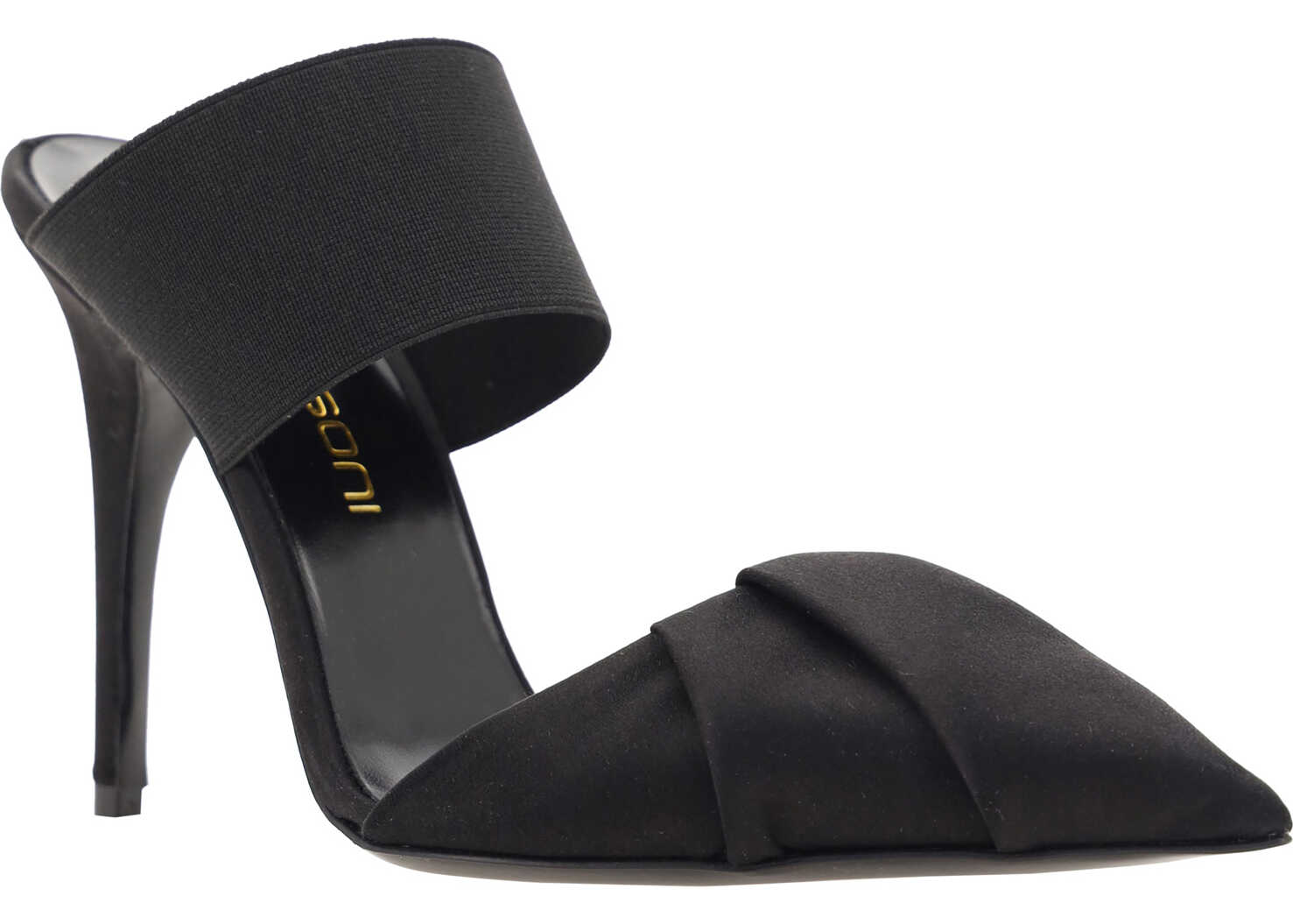 Bruno Frisoni's Draped Pumps are distinguished by a modern, wrap-around design. Featuring a stretch webing ankle strap that gently wraps around the foot, they feature a geometric toe made with overlapping bands for a sophisticated effect. The leather stiletto heel adds elegance and momentum to the silhouette, while the logo-embossed insole provides a touch of exclusivity.
