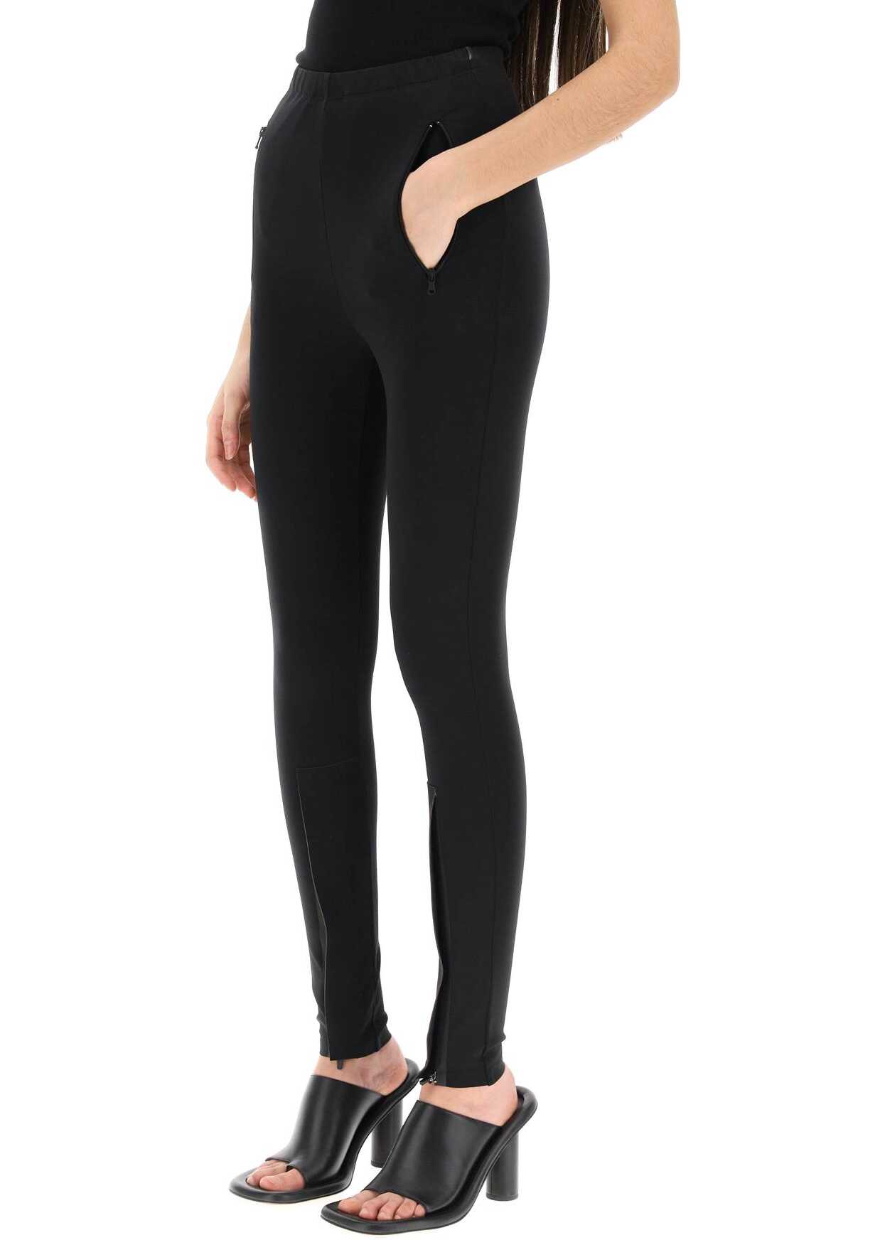 Leggings in water-repellent stretch techno jersey, featuring front openings at the hem with concealed heat-sealed zip. Elasticated waist, side zip pockets. The model is 177 cm tall and wears a size XS.
