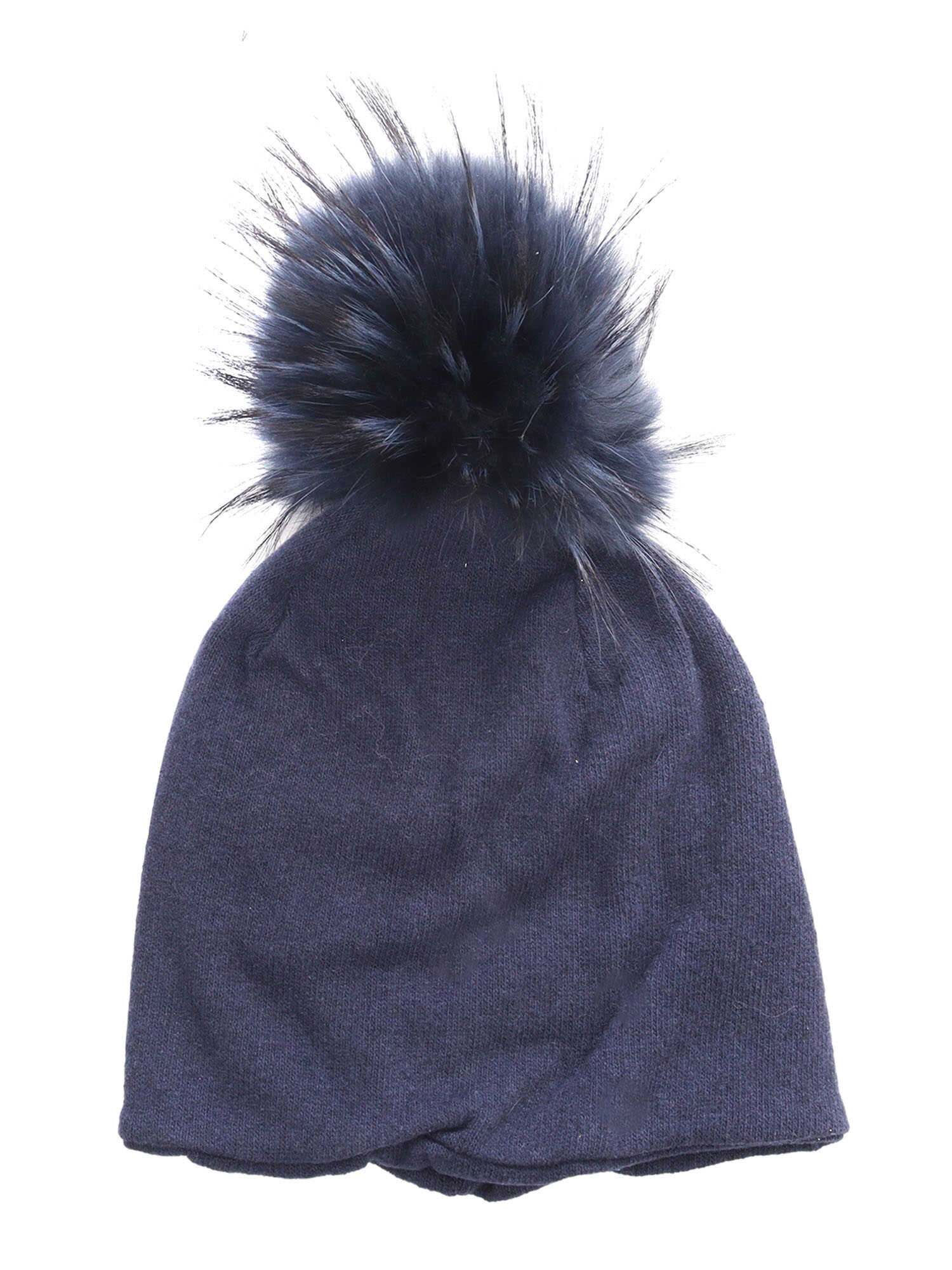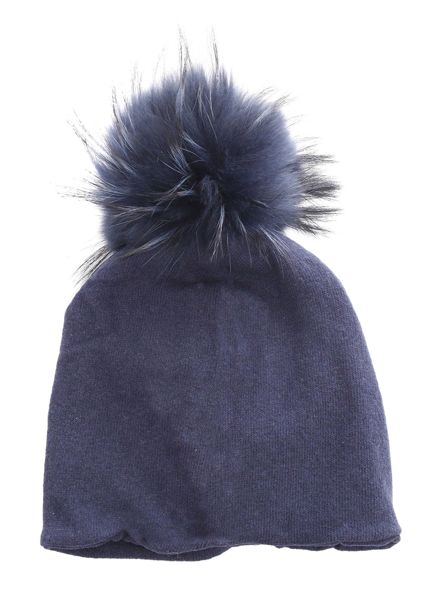 Stretch cotton blend beanie, pom pon in real viverrino dog fur (Murmasky)