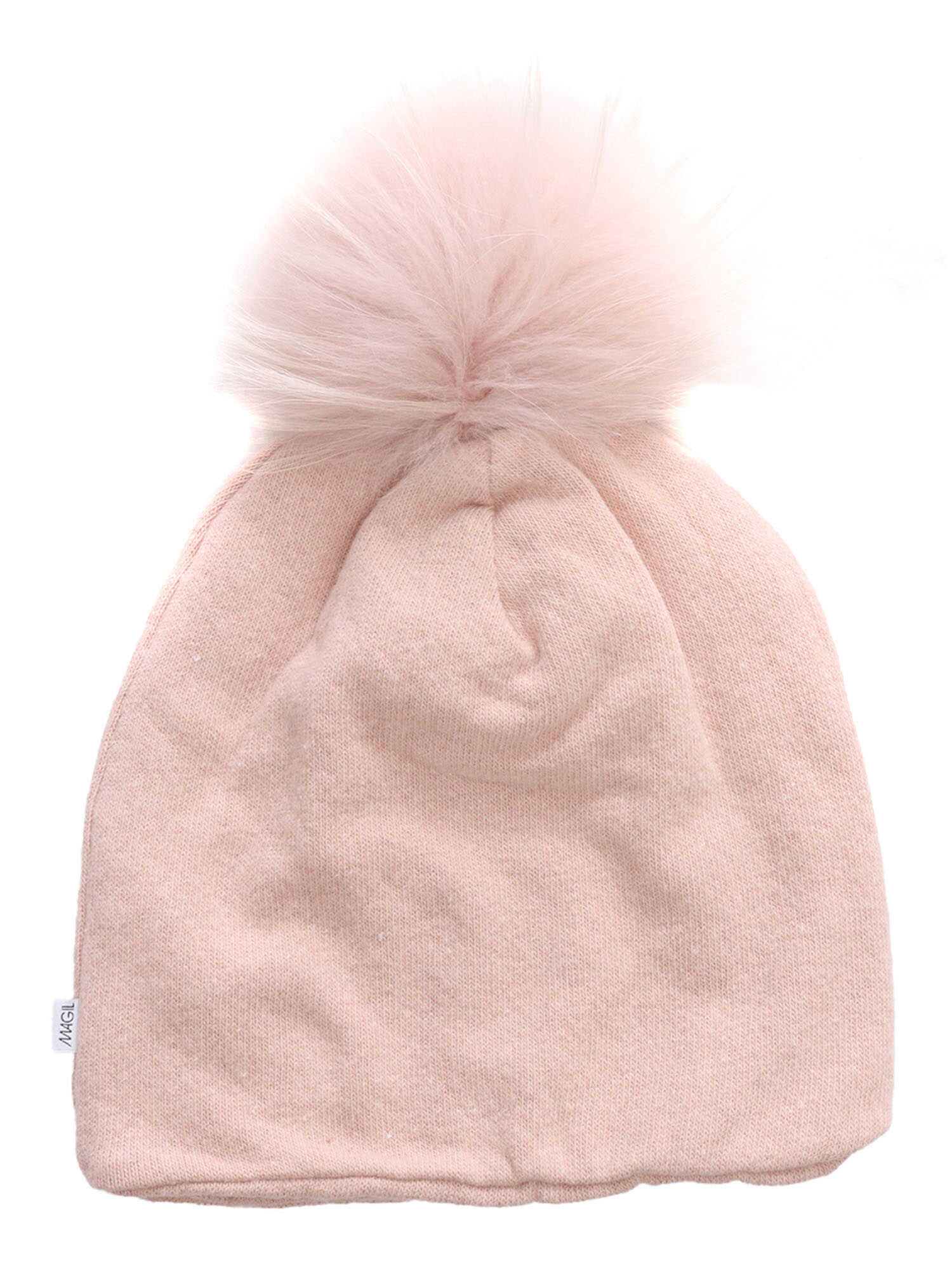 Stretch cotton blend beanie, pom pon in real viverrino dog fur (Murmasky)