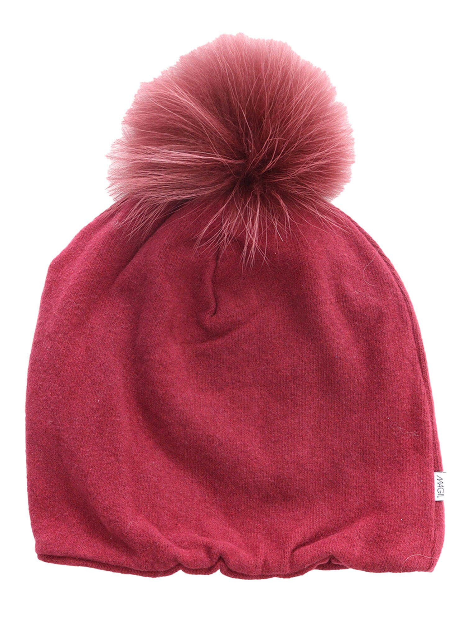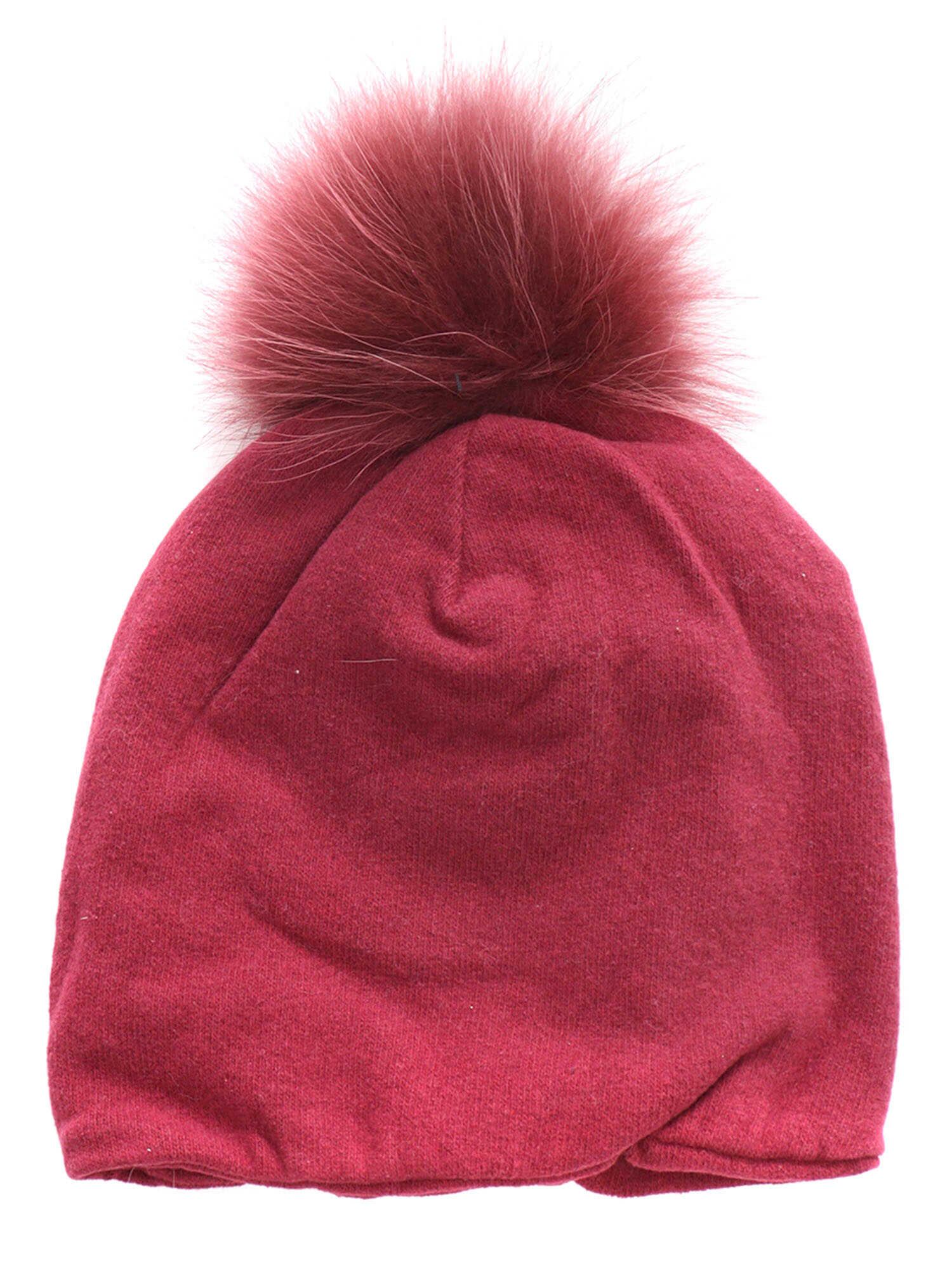 Stretch cotton blend beanie, pom pon in real viverrino dog fur (Murmasky)