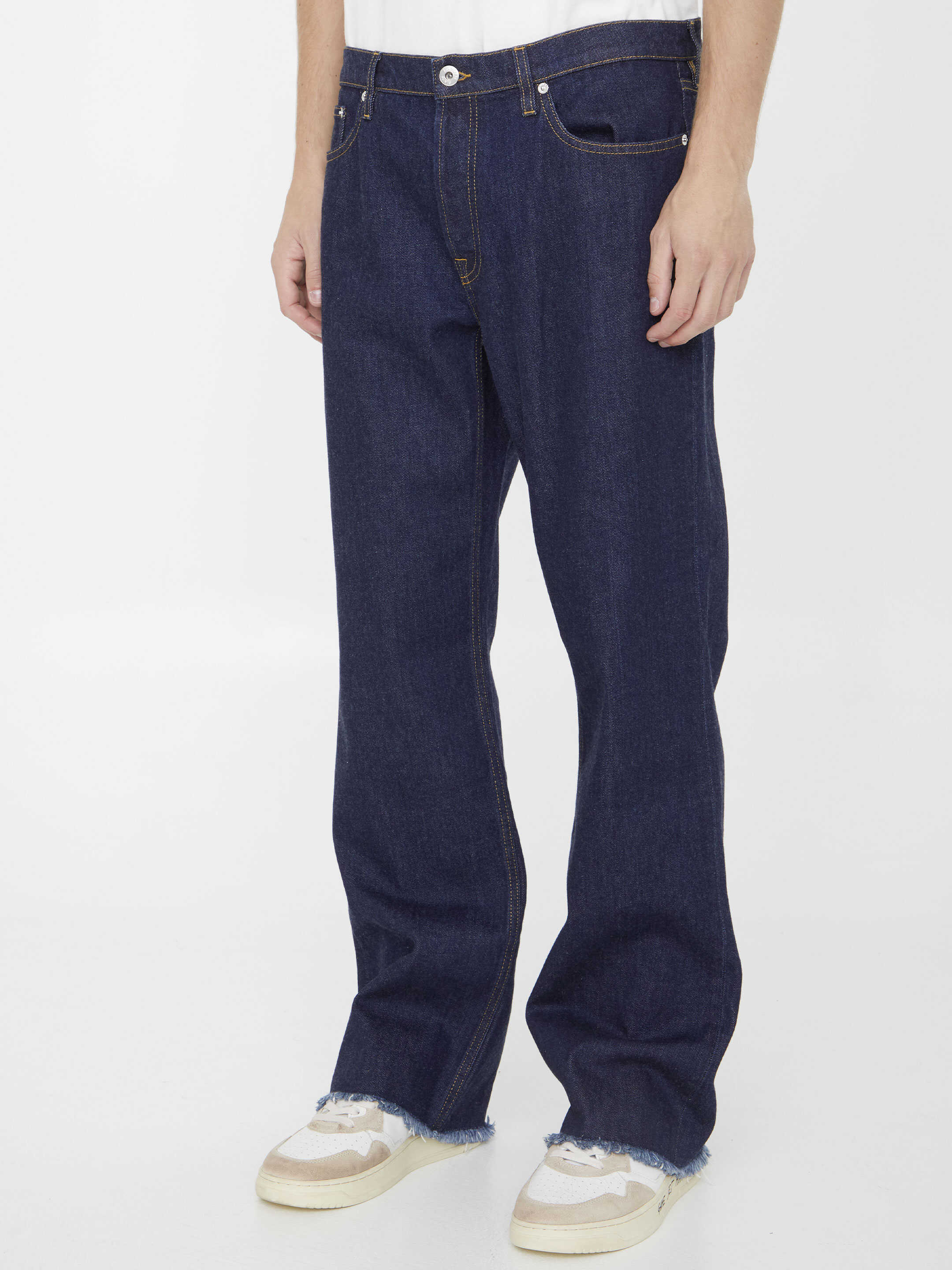 Straight-leg jeans in blue denim with contrast stitching. Five-pocket design, belt loops and Lanvin leather patch at the back. Frayed hems. Regular fit.