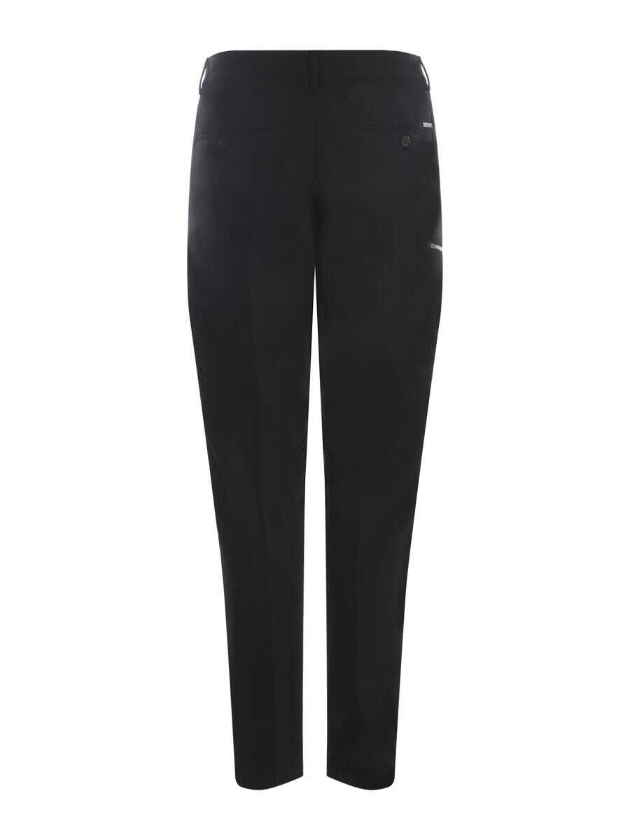 Trousers Dsquared2 in stretch wool. Belt loops. Darts and ironed crease. Hook and button closure. Side pockets. Side zip pockets detail. Metal logo patch applied on the back. Back welt pockets with button.