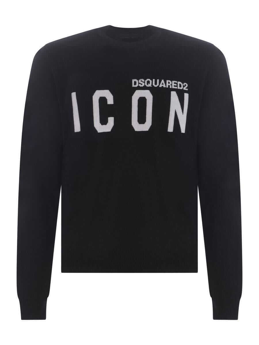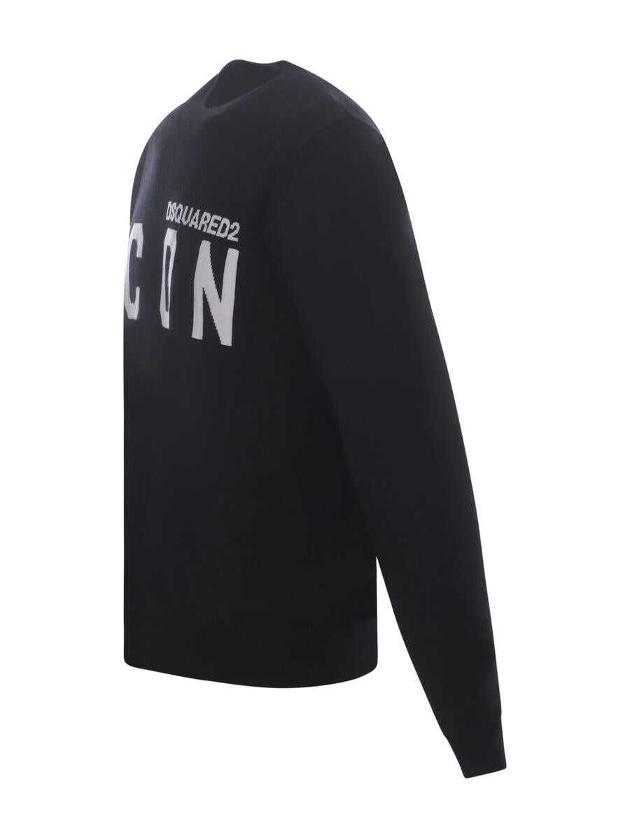 Sweater Dsquared2 "Icon" in Black virgin wool. Contrasting White "Dsquared2 Icon" lettering logo. Crewneck. Long sleeves. Ribbed cuffs and bottom. Regular fit.
