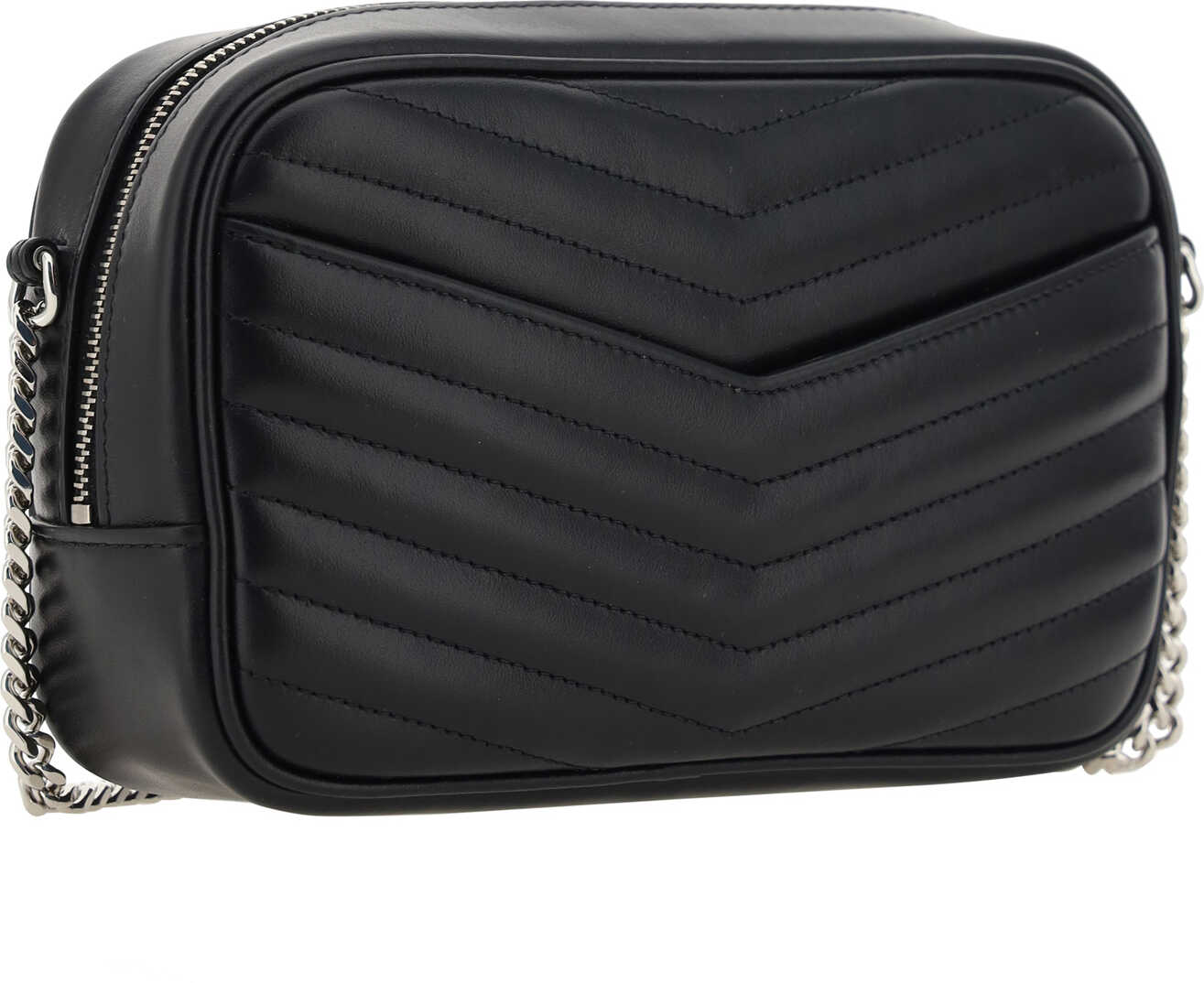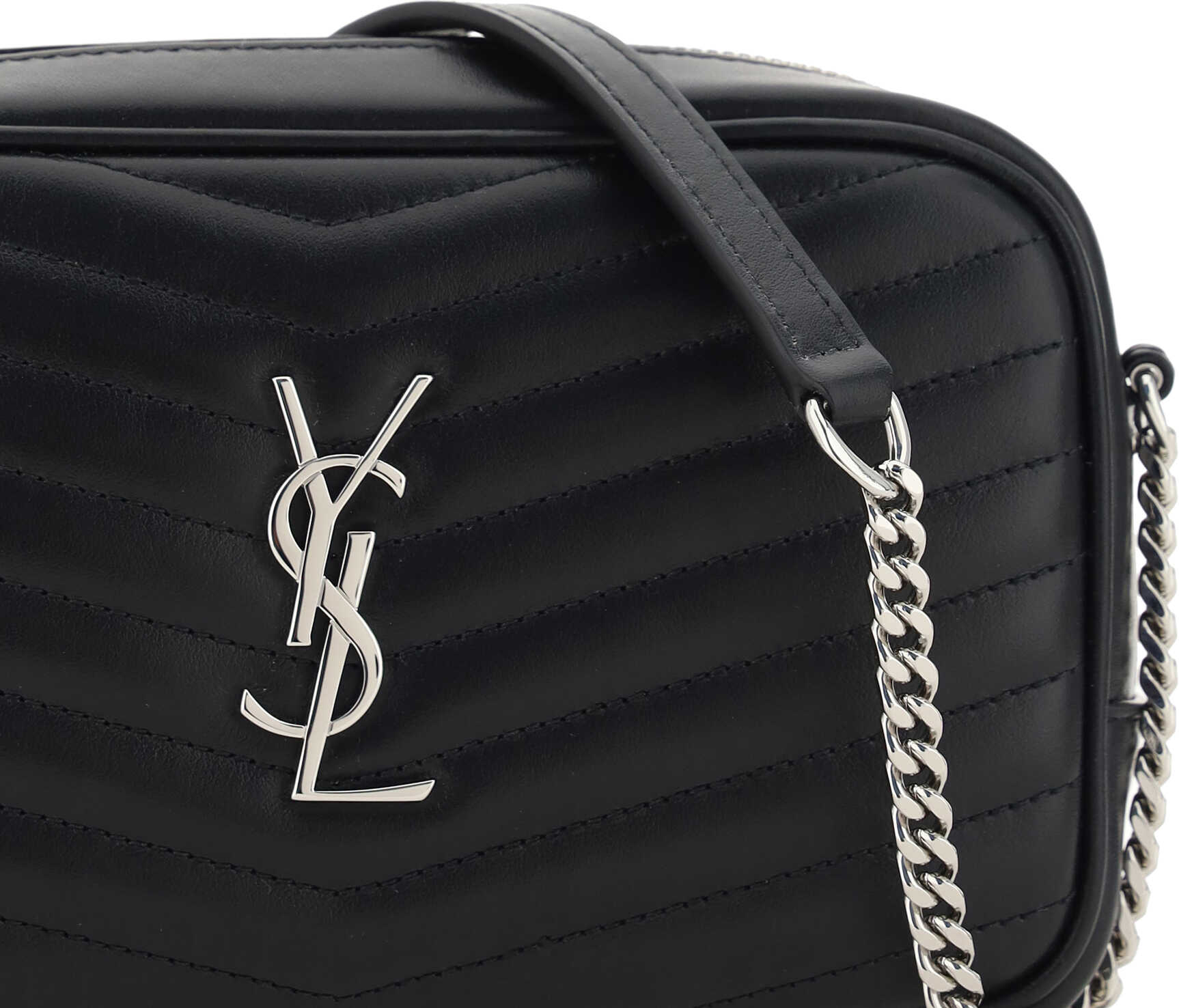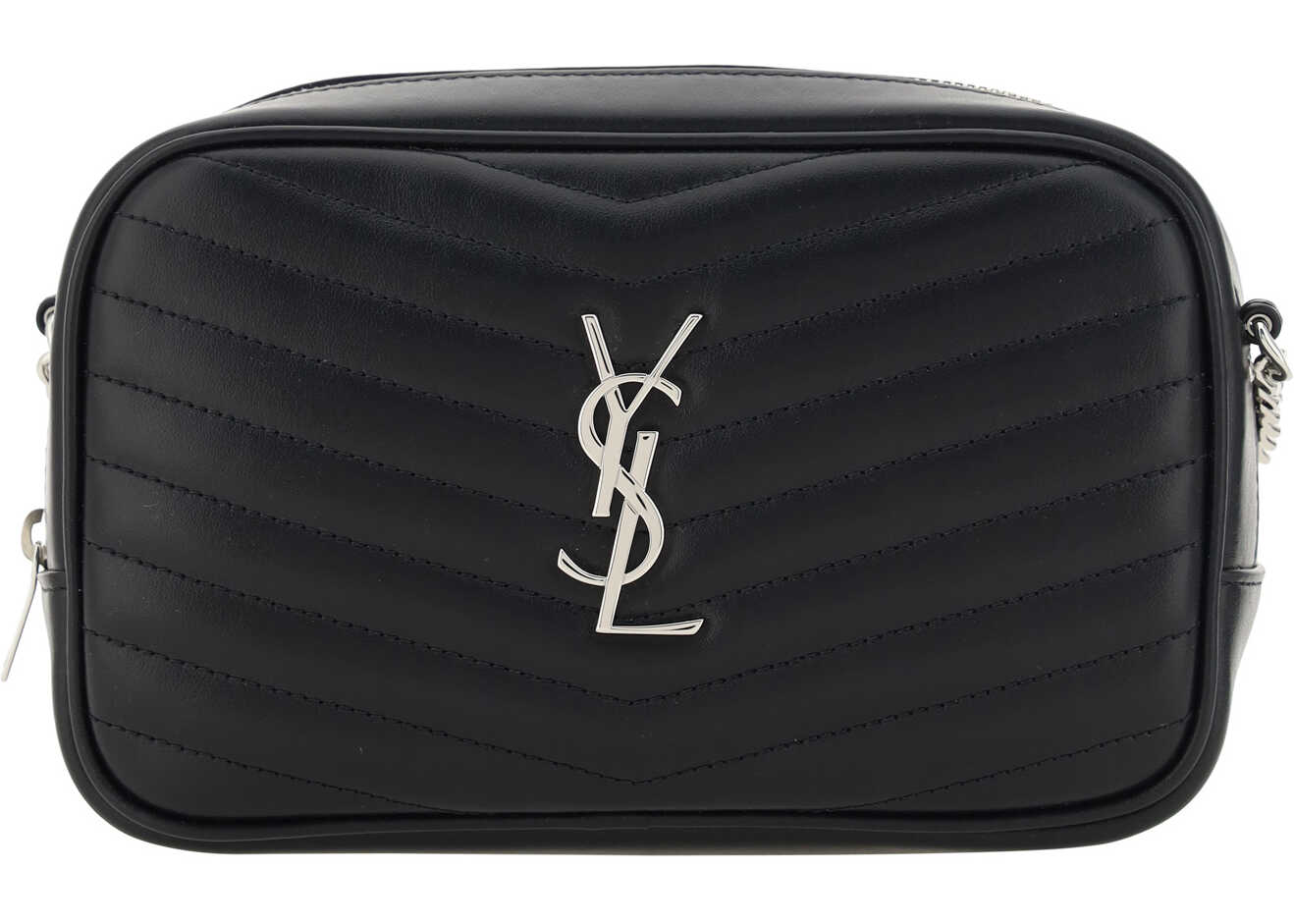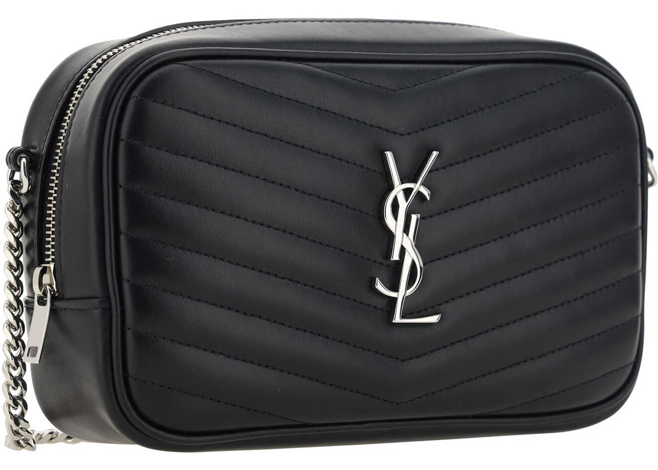 Calfskin Mini Shoulder Bag by Saint Laurent, all-over quilted and padded design, chain strap with leather insert, top zipper closure, iconic YSL logo embossed on front.
