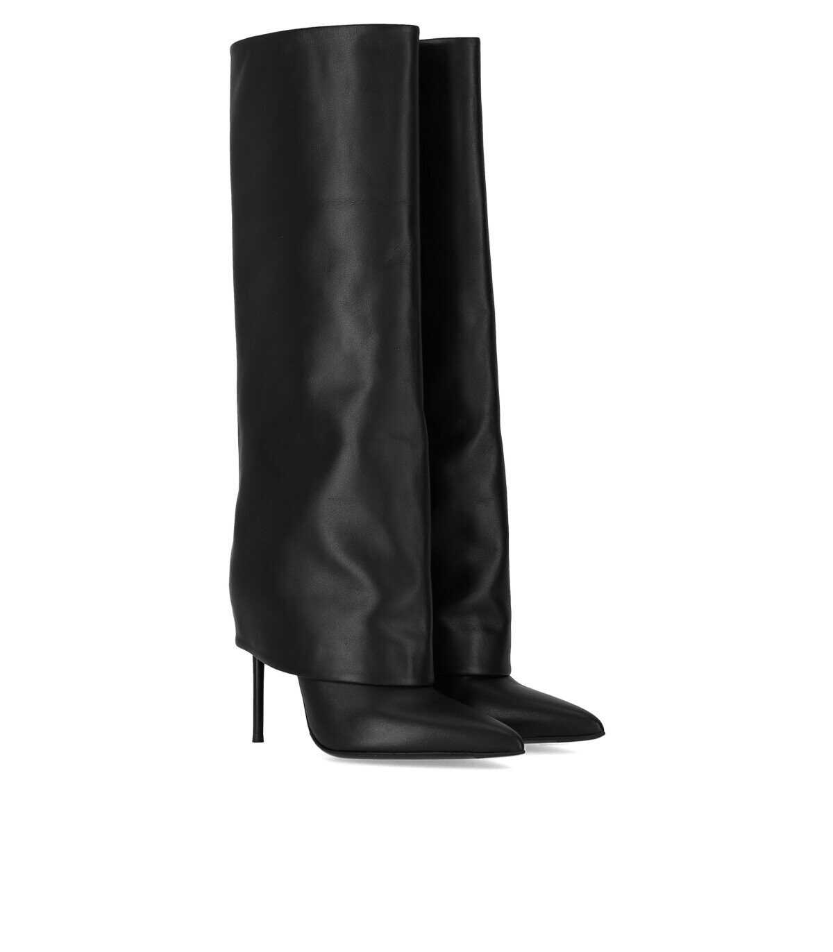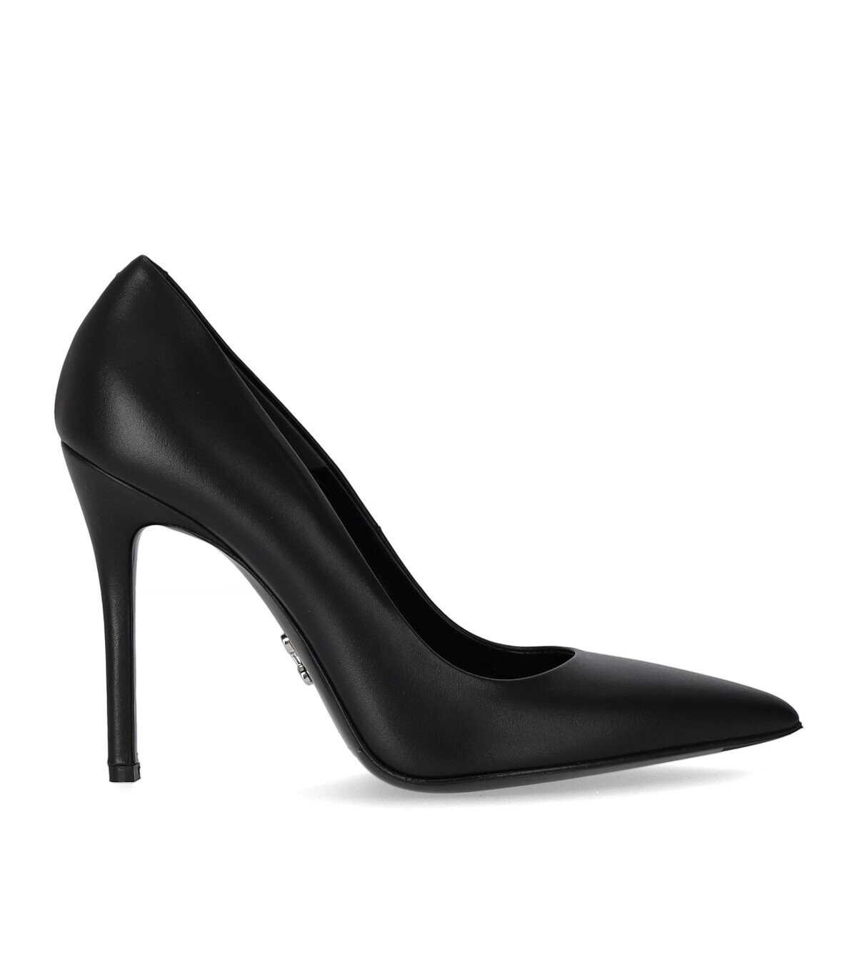 Leysbek pumps by Sergio Levantesi made of soft black leather, featuring a tapered toe and stiletto heel. Leather lining and insole, leather sole. Heel height 10.5 cm.