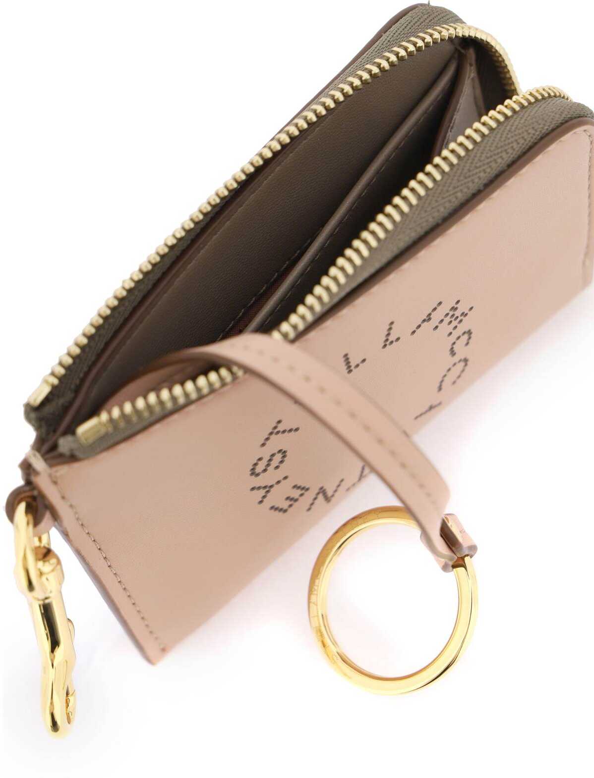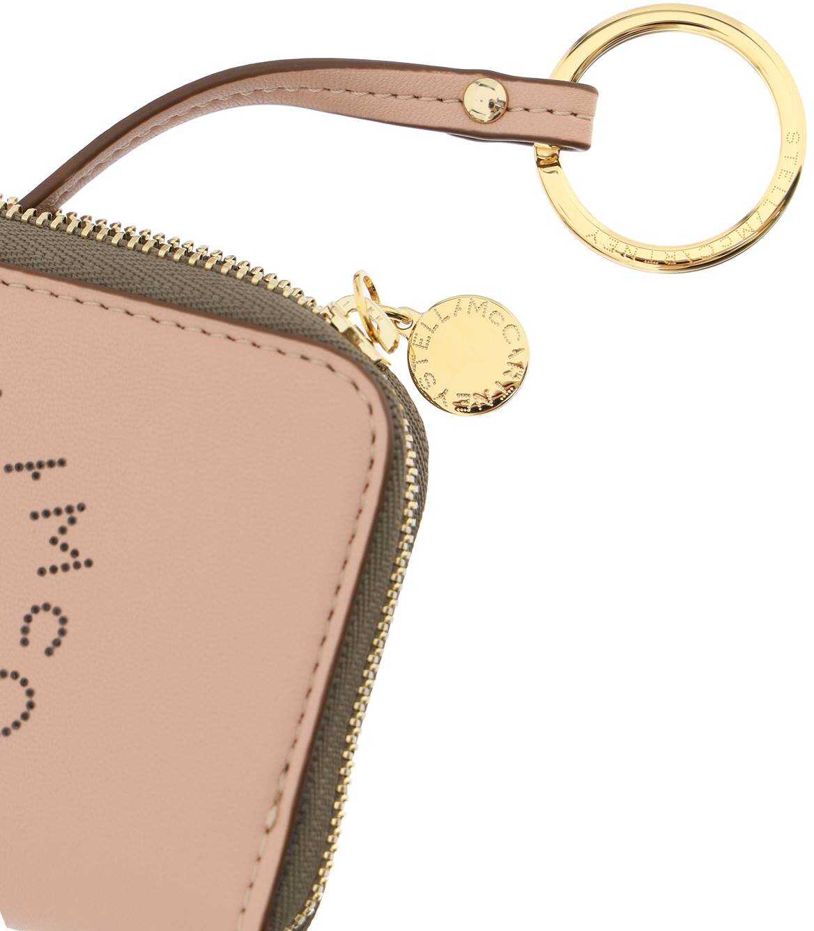 Stella McCartney card holder made of soft Alter Mat and decorated with Stella logo on front. Zipper closure, gusseted side, interior with one card slot and a key holder, additional card slot at back, snap hook. Gold-finished metalware.