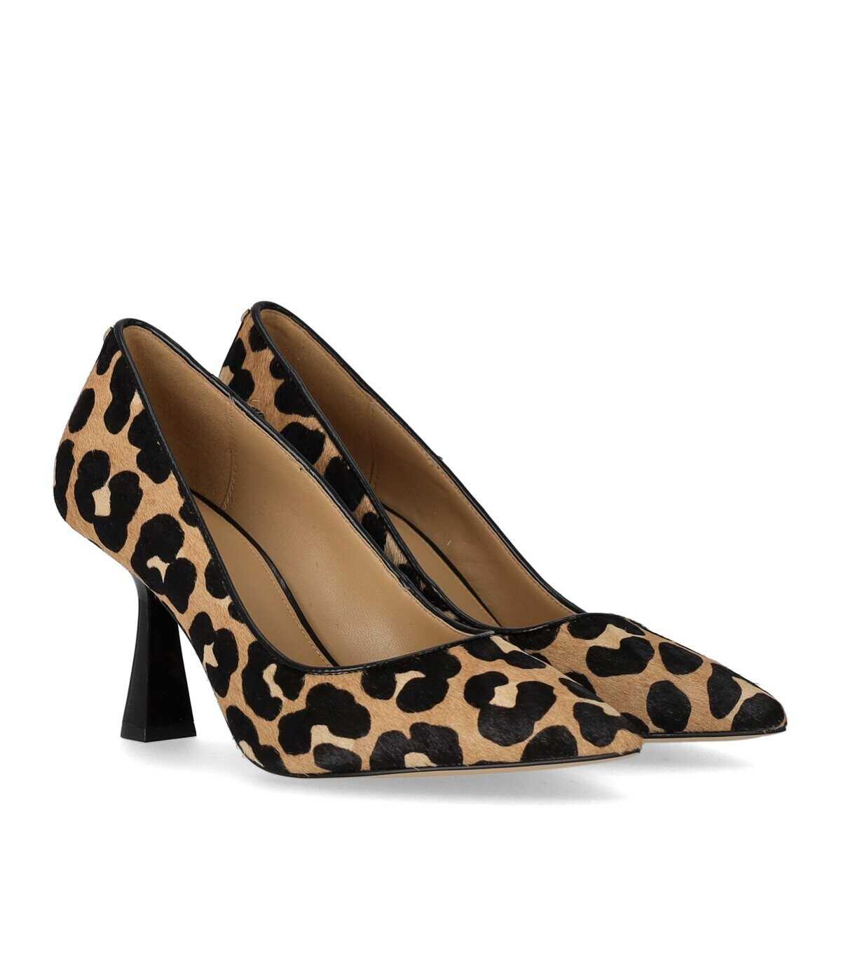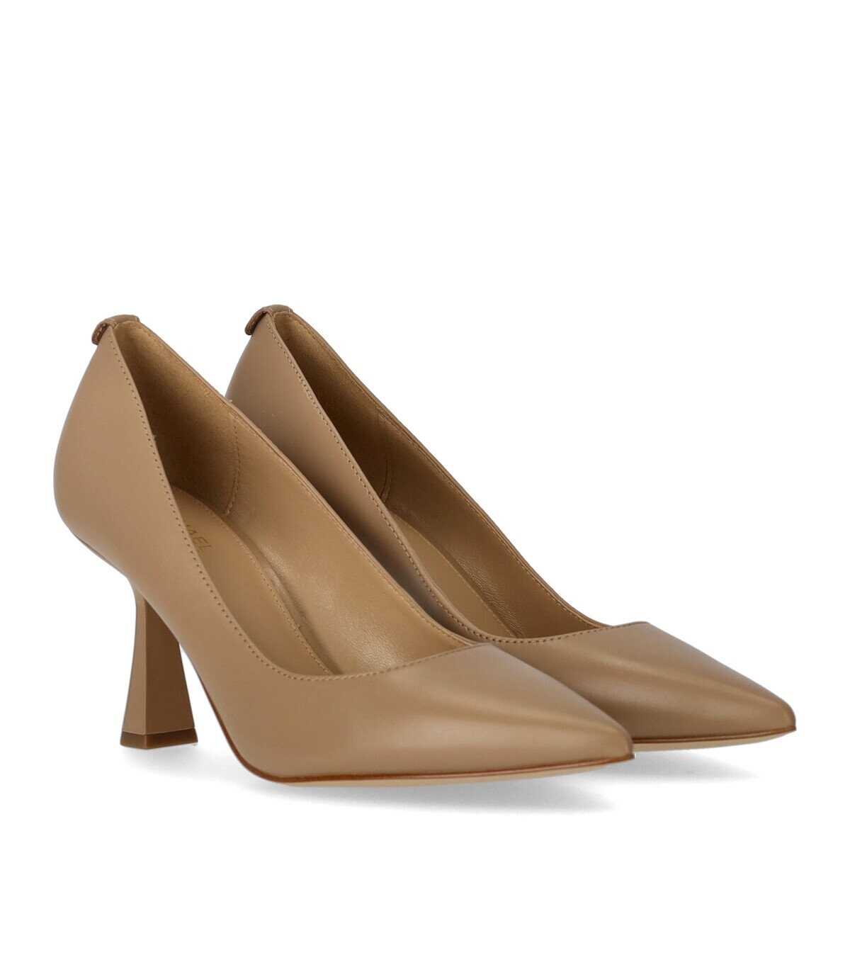 Alina pump by Michael Kors made of brown leather, featuring a tapered toe, leather lining and insole and MK logo detail on the heel. Rubber sole, heel height 7.5 cm.
