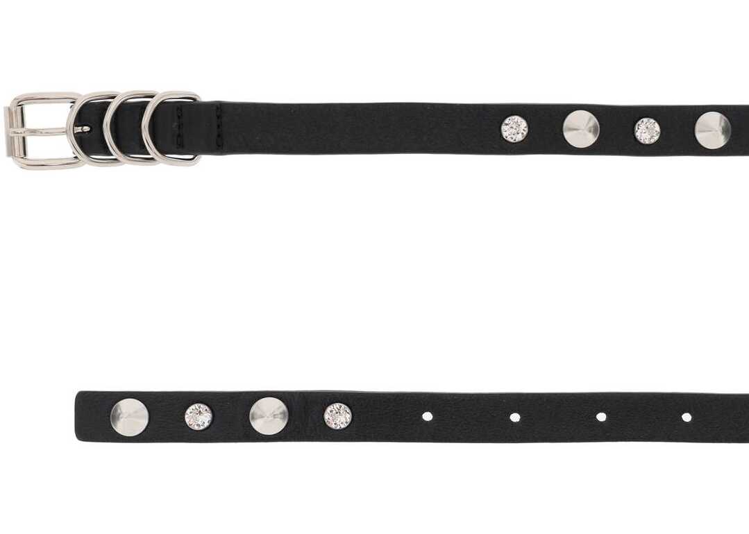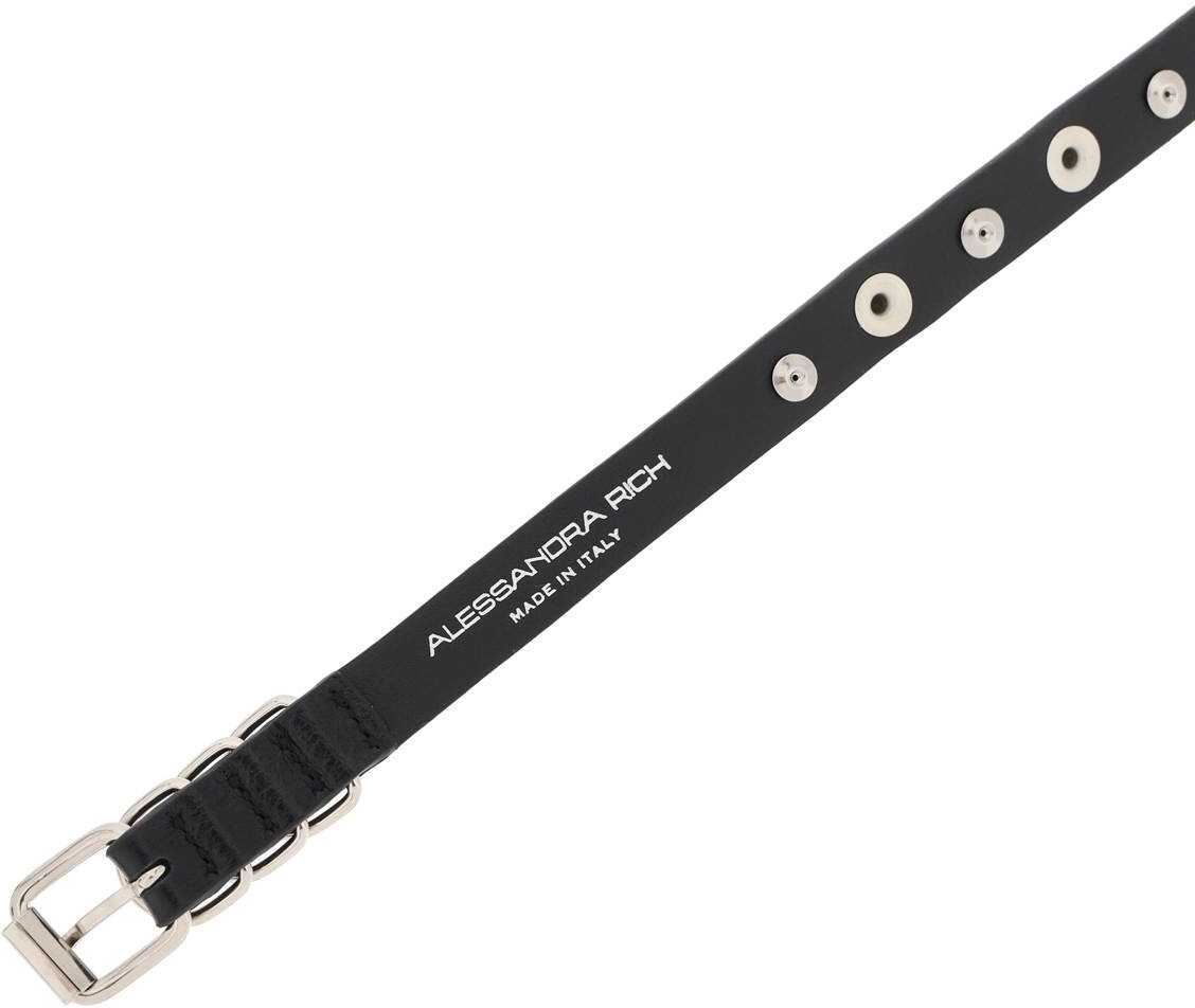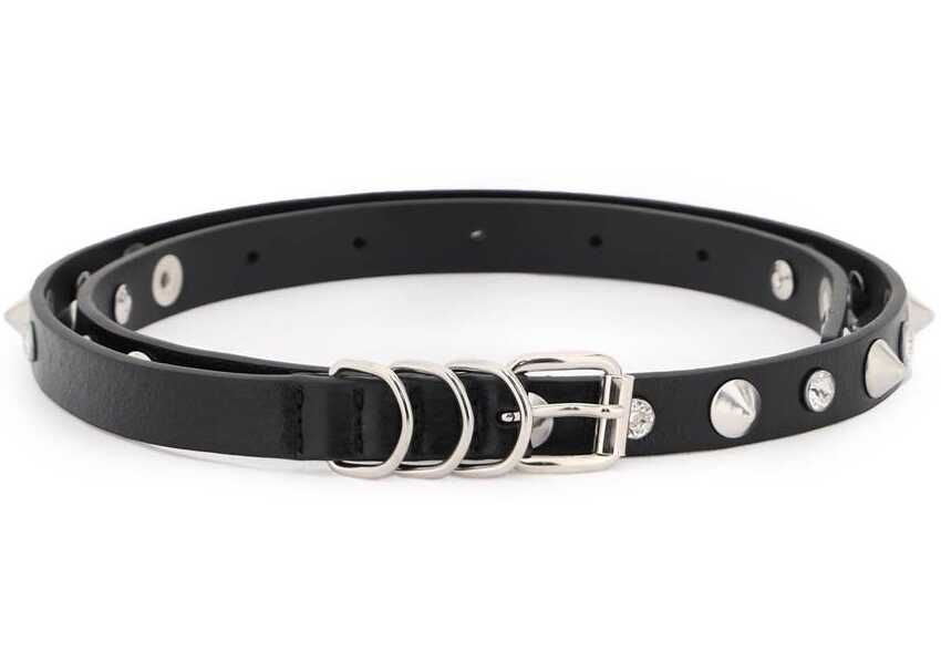 Alessandra Rich belt in shiny leather embellished with all-over spikes and crystals. Silver-finished brass metalware. Item in photo corresponds to size 75.
