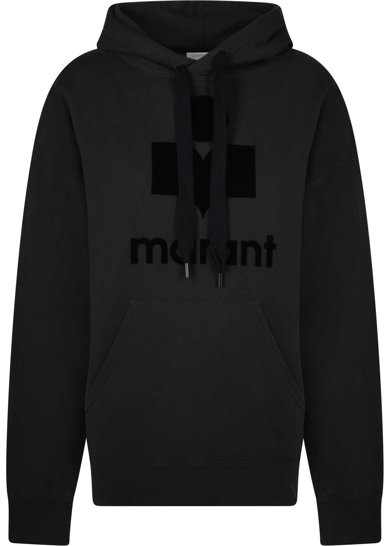 Cotton Mansel Hoodie by Marant Etoile, hood with adjustable drawstring, ribbed cuffs, front kangaroo pocket, ribbed hem, iconic brand monogram printed in contrasting color on front, regular fit.