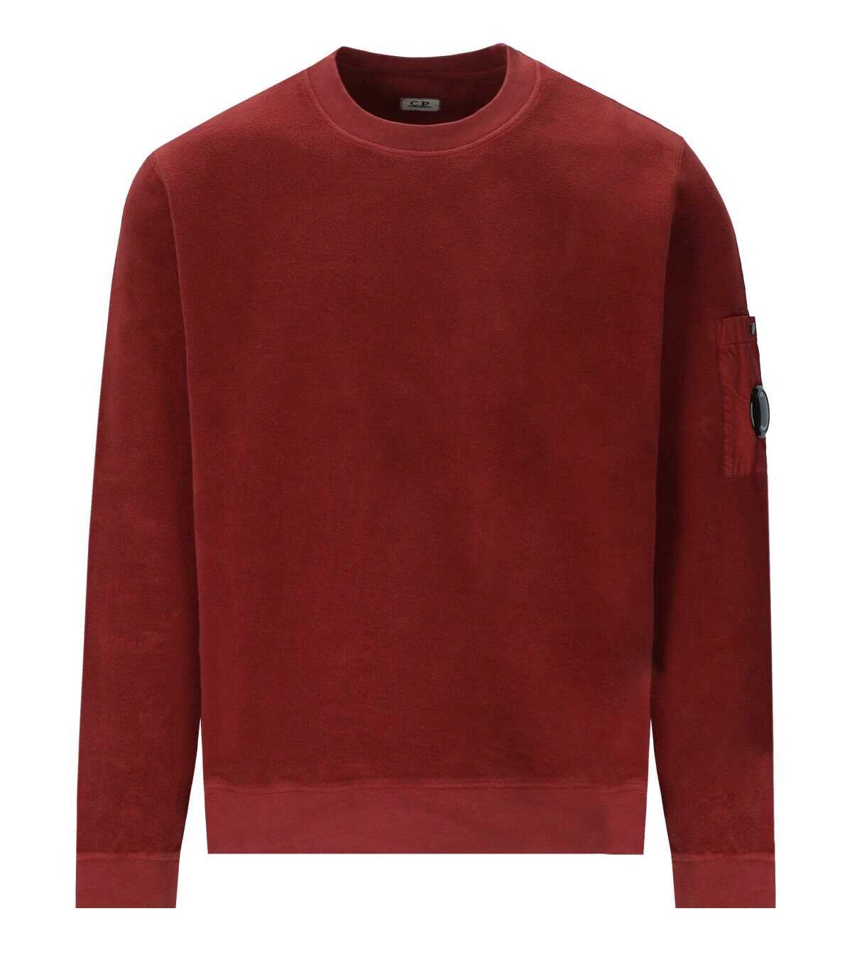 Crewneck sweater by C.P. Company in garment-dyed orange merino wool. Iconic pocket with C.P. lens on the left sleeve, ribbed collar, cuffs and hem.