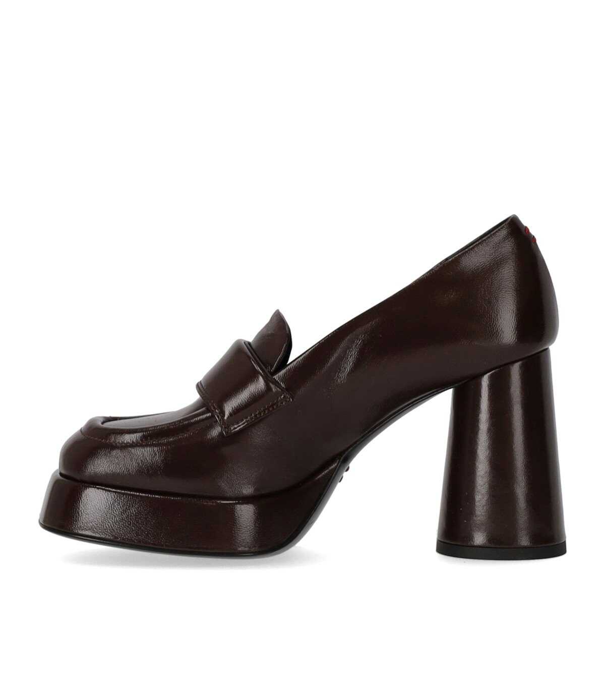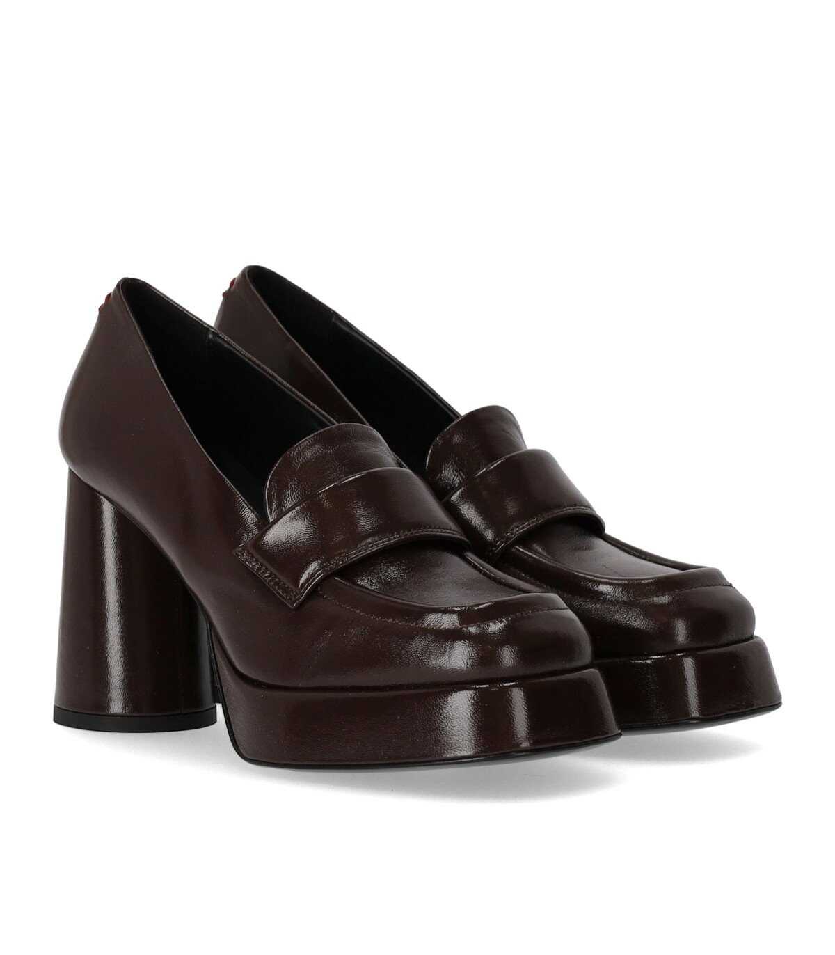 Glaze loafer by Halmanera made of shiny dark brown leather. Slightly square toe, soft leather lining and insole, leather sole with round heel. Height 9.5 cm.