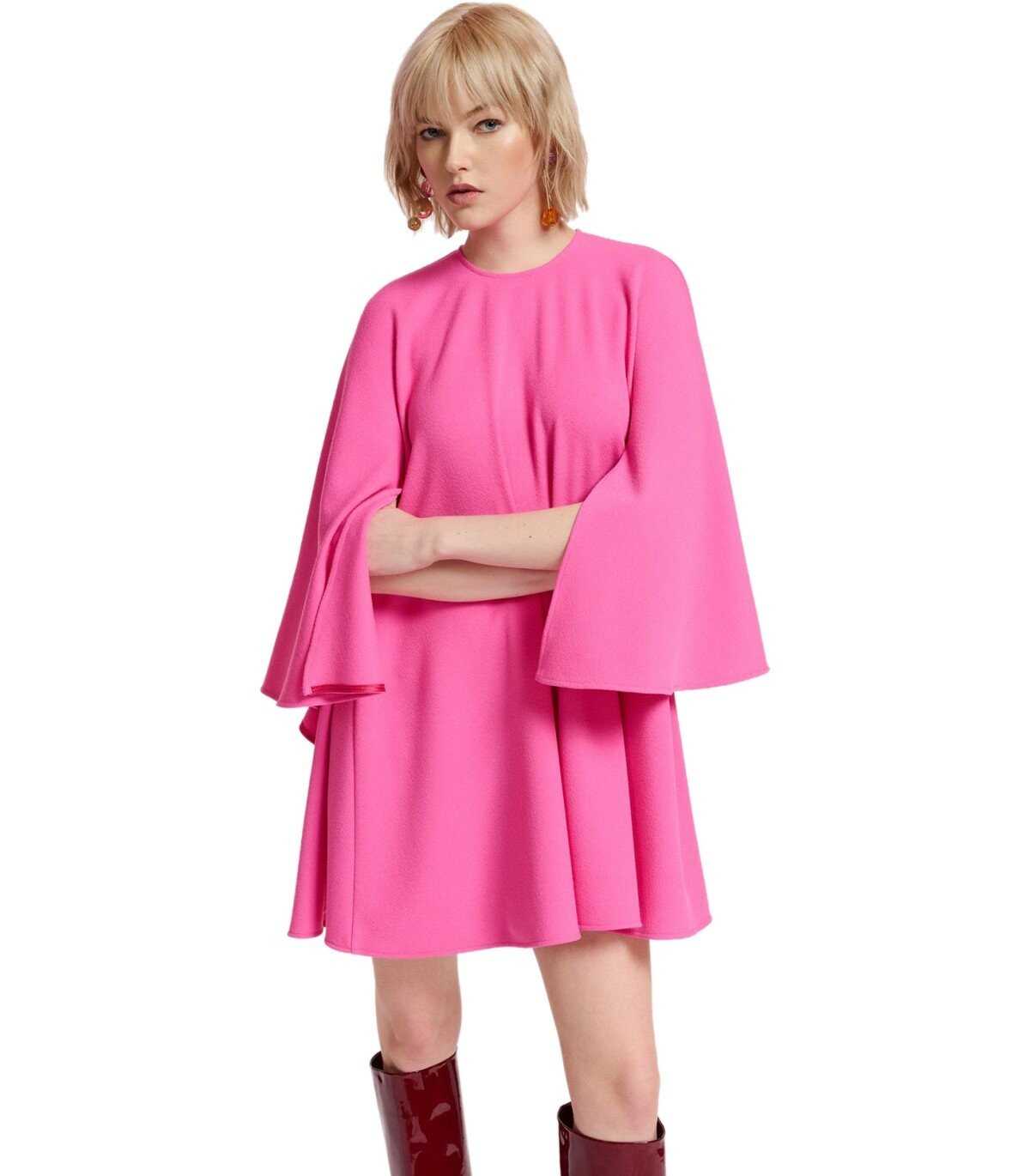 Evidence A-line dress by Essentiel Antwerp made of viscose and polyester blend fabric in shades of pink, featuring wide sleeves with slits and hidden zip closure on the back. Oversized fit.