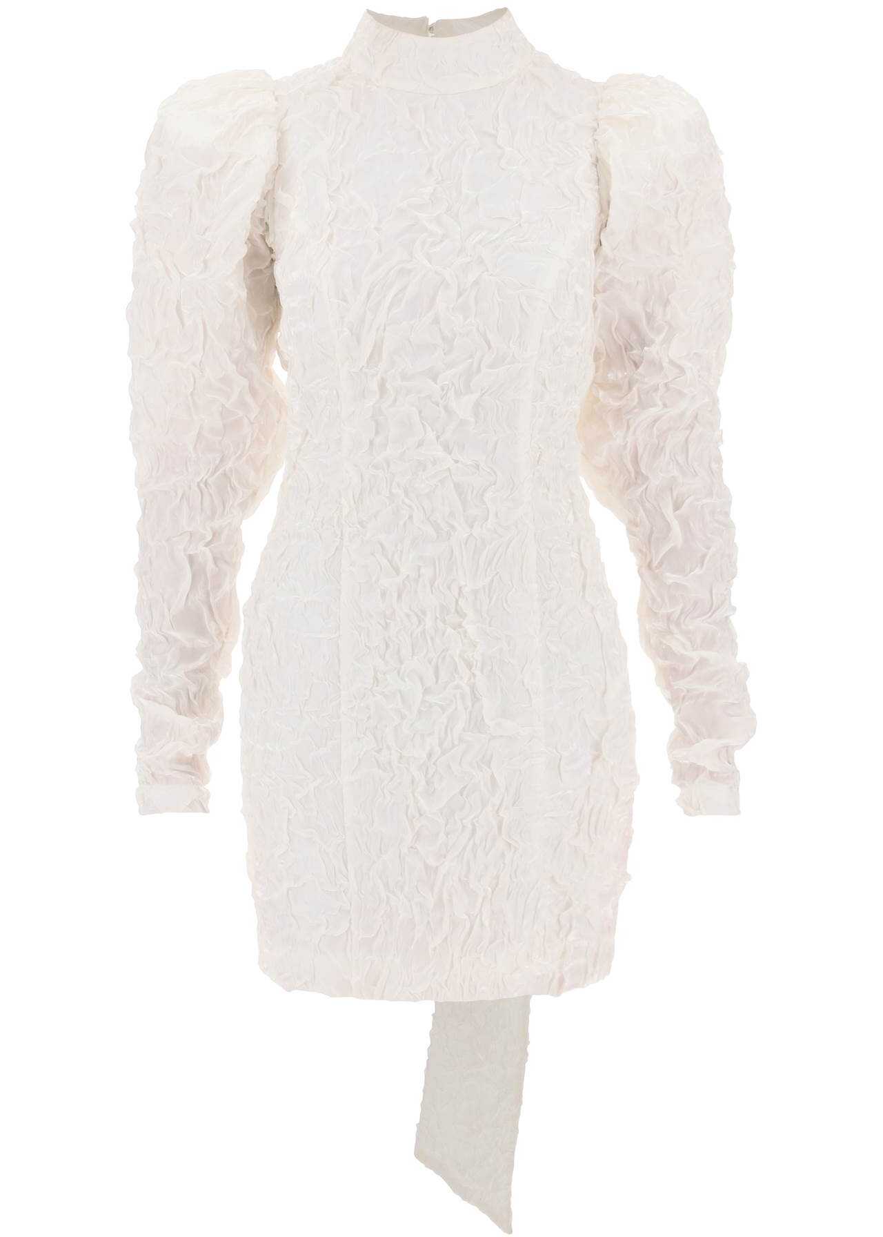 Rotate mini dress crafted of shiny crinkled fabric in a mock-neck design with gigot sleeves. Defined by princess seams, its fitted silhouette features a back cut-out with macro sash detail and a small front slit embellished with covered buttons. Back invisible zip closure, full lining. The model is 177 cm tall and wears a size EU 36.