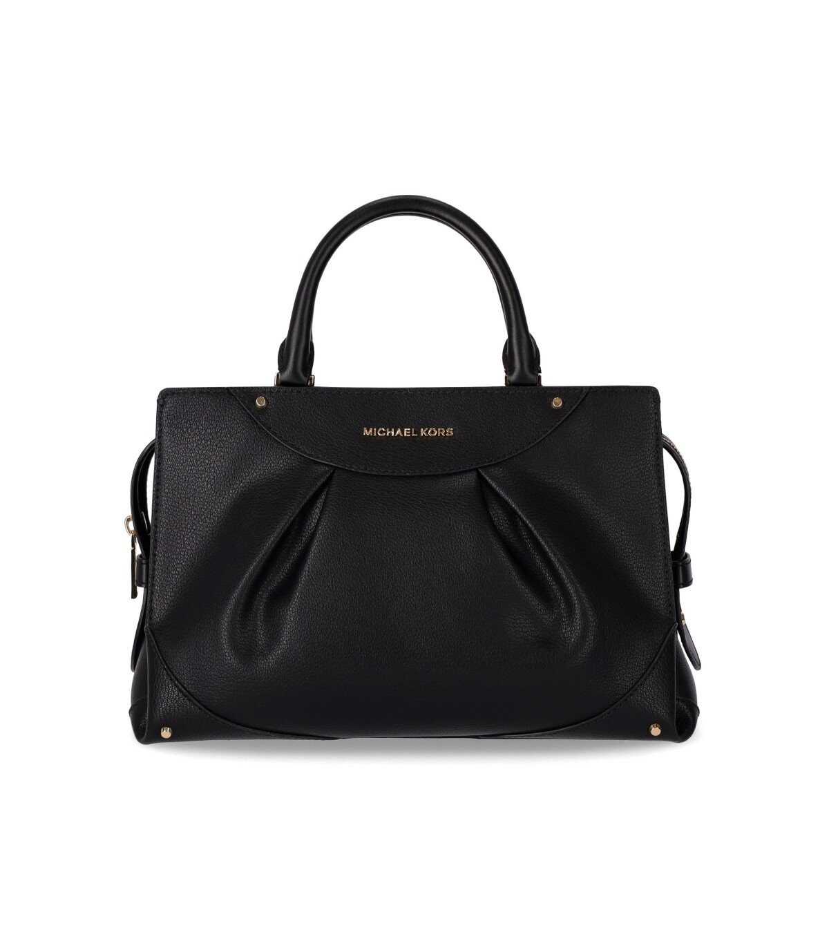 Nori ballet flat by Michael Kors made of black leather, embellished with a bow on the front with silver metal logo charms. Leather interior and quilted insole, black rubber sole. Height 1 cm.