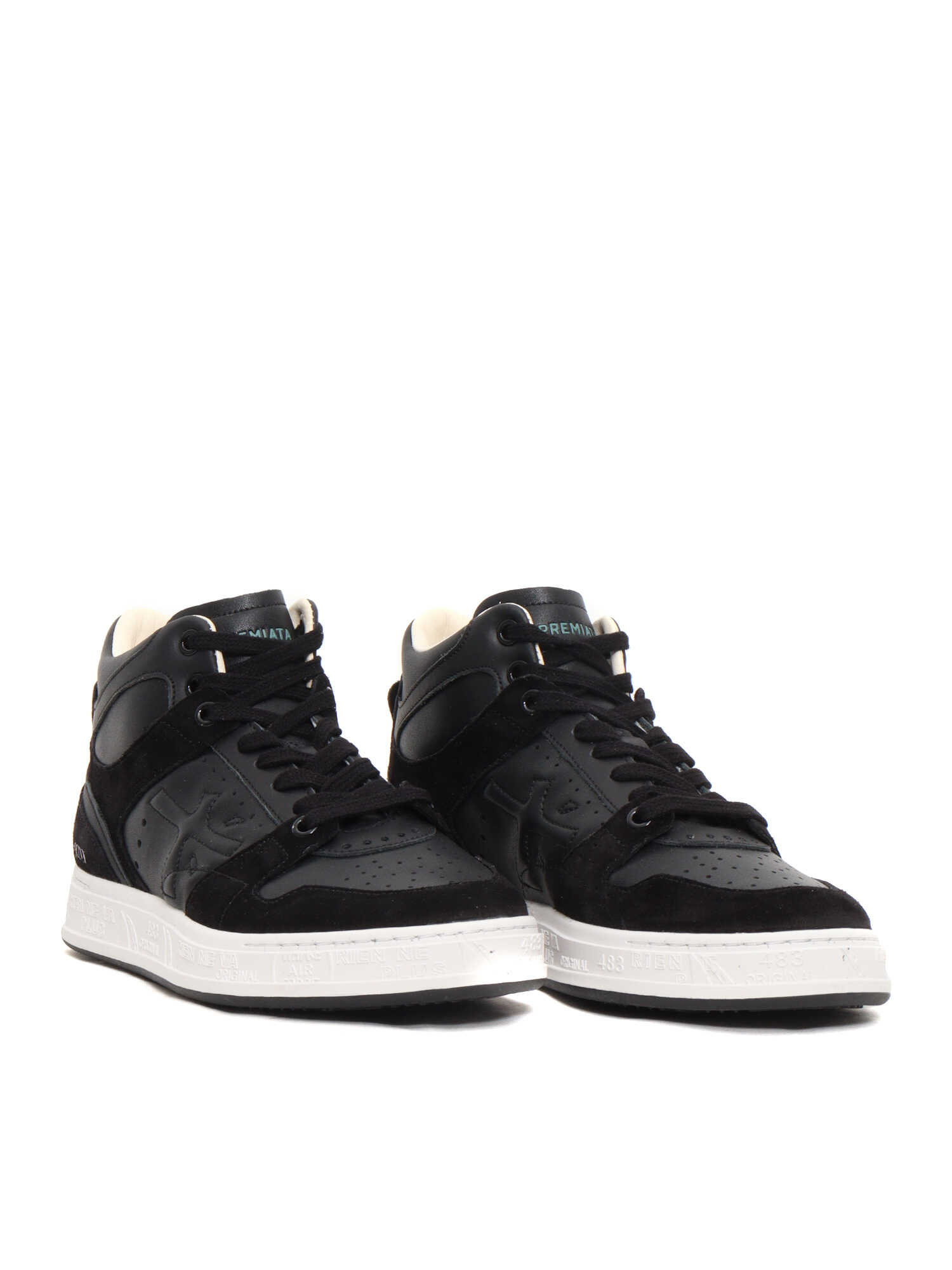 High top sneakers in smooth leather, suede details, logo, rubber sole with 3D logo