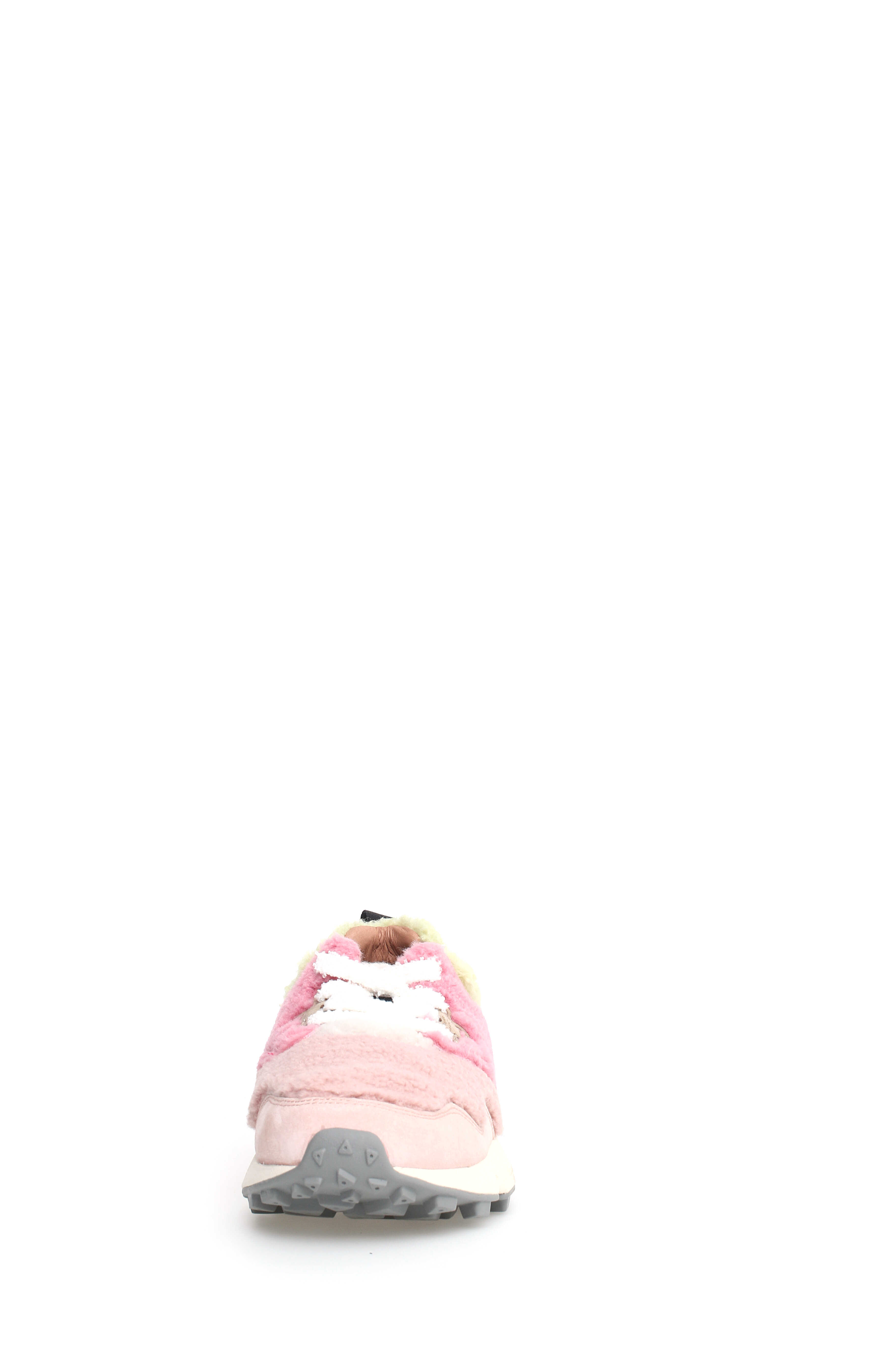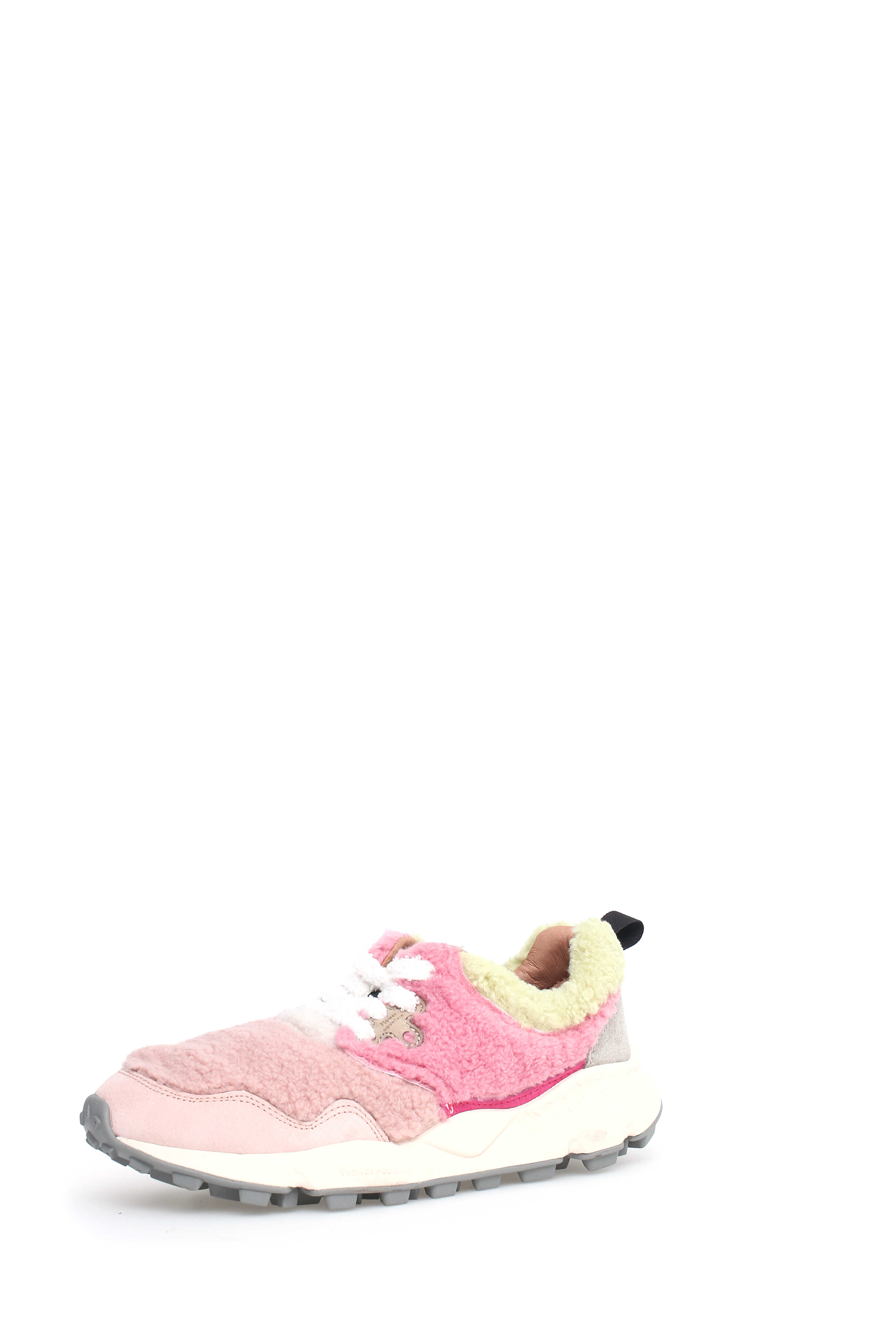 Colorful sneakers made of fur and nubuck leather, with a rubber sole.